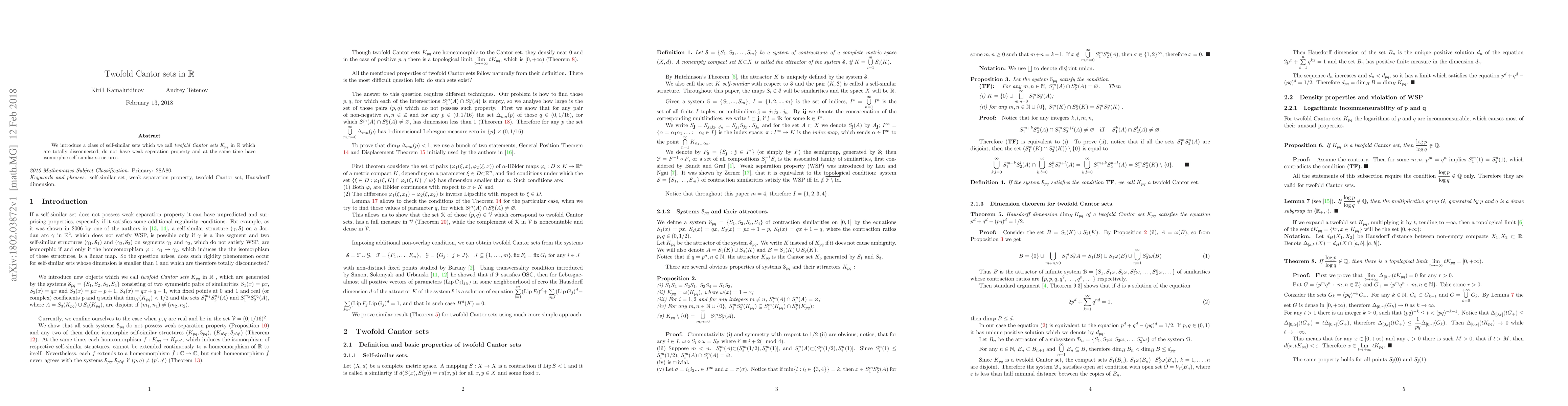 Summary: This paper introduces a new class of self-similar sets called twofold Cantor sets $K_{pq}$ in $\mathbb R$, which are totally disconnected, lack the weak separation property, yet maintain isomorphic self-similar structures.