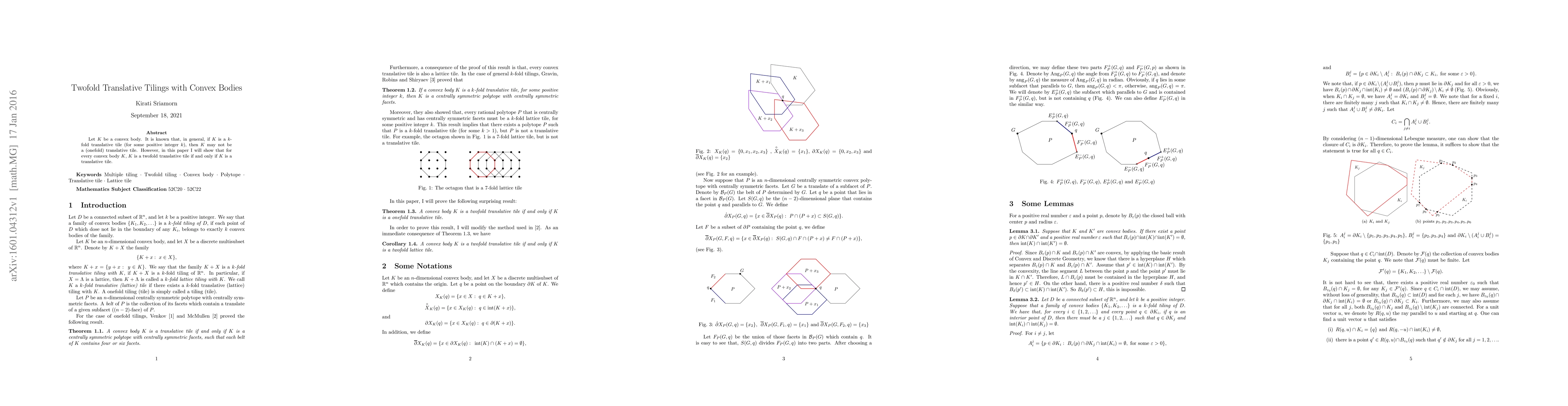 This paper demonstrates that any convex body $K$ is a twofold translative tile if and only if it is a onefold translative tile, resolving the general ambiguity in translative tiling properties.
