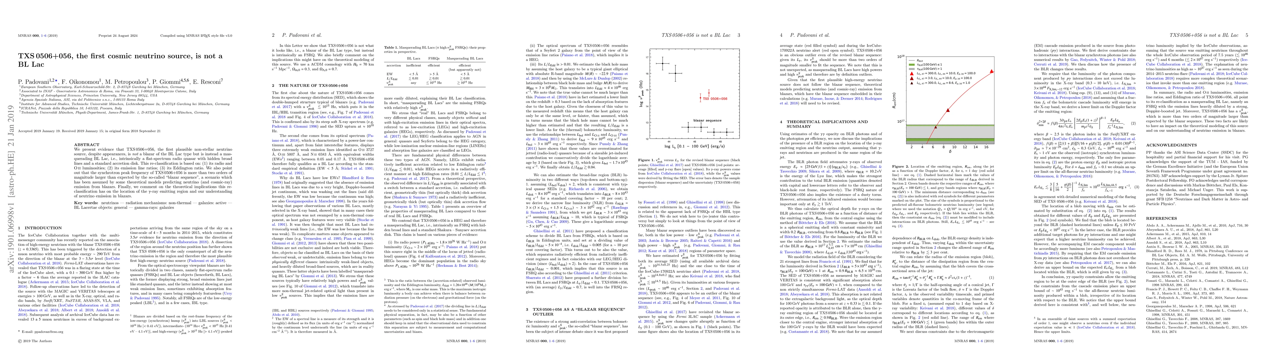 Research finds TXS 0506+056, a cosmic neutrino source, is not a BL Lac but a masquerading BL Lac, a flat-spectrum radio quasar with hidden broad lines and an accretion disk.