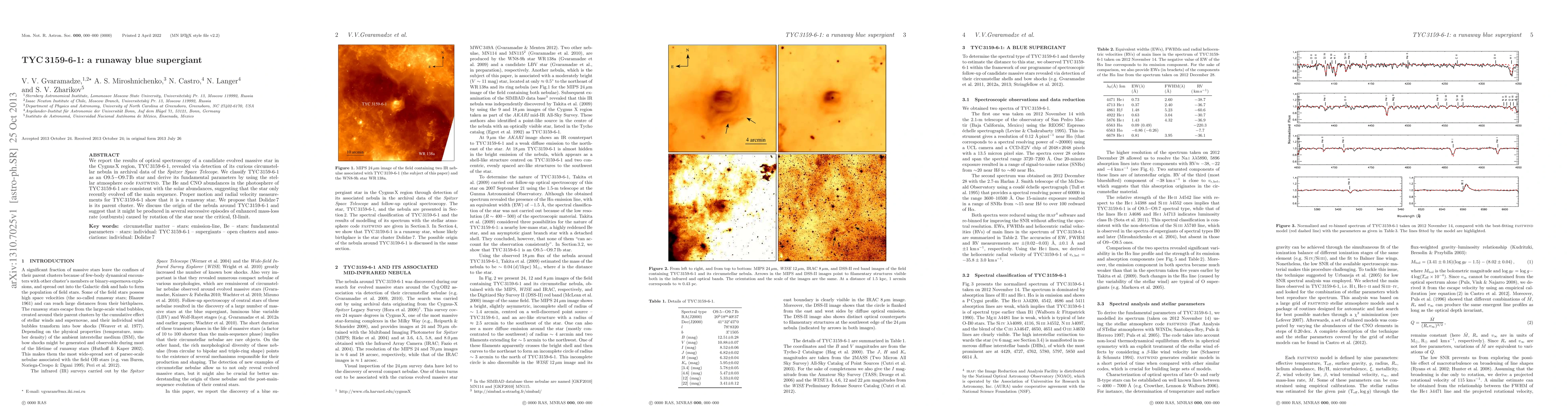 This study identifies TYC 3159-6-1 as an O-type runaway blue supergiant in Cygnus X, characterized by an O9.5-O9.7 Ib spectral classification and a nebula likely formed by rotationally-induced mass-loss outbursts. The star's high velocity suggests it was ejected from its parent cluster, Dolidze 7.
