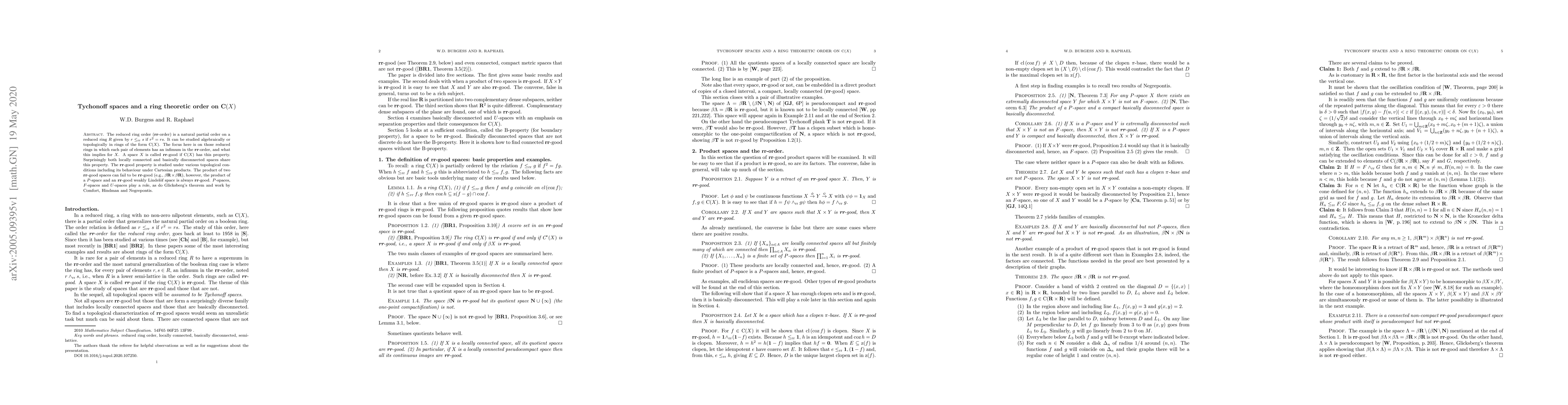 This paper explores the rr-order, a partial order in reduced rings like C(X), showing that both locally connected and basically disconnected spaces satisfy certain properties related to this order. The concept of rr-good spaces is introduced and analyzed under various topological conditions, revealing interesting behaviors under Cartesian products and connections to P-spaces, F-spaces, and U-spaces. The study also references Glicksberg's theorem and works by Comfort, Hindman, and Negrepontis.