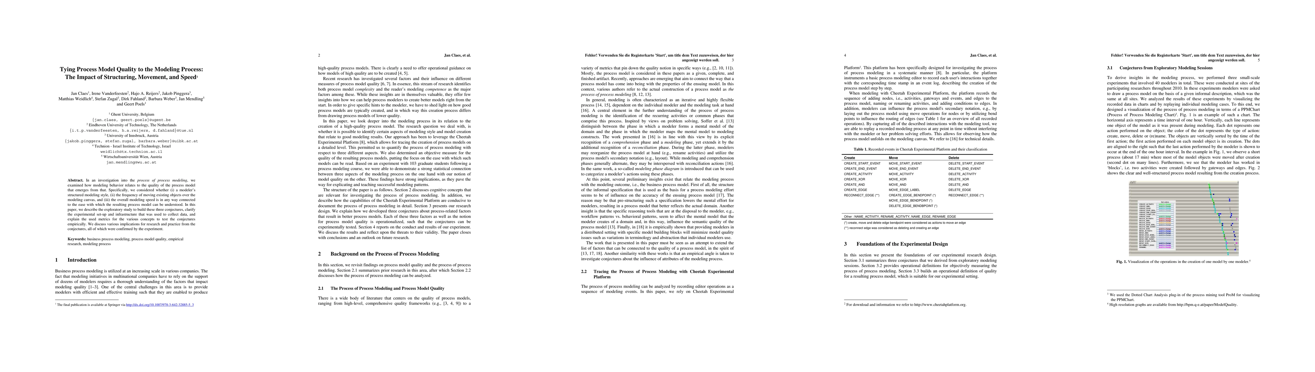In an investigation into the process of process modeling, we examined how modeling behavior relates to the quality of the process model that emerges from that. Specifically, we considered whether (i) a modeler's structured modeling style, (ii) the frequency of moving existing objects over the modeling canvas, and (iii) the overall modeling speed is in any way connected to the ease with which the resulting process model can be understood. In this paper, we describe the exploratory study to build these three conjectures, clarify the experimental set-up and infrastructure that was used to collect data, and explain the used metrics for the various concepts to test the conjectures empirically. We discuss various implications for research and practice from the conjectures, all of which were confirmed by the experiment.