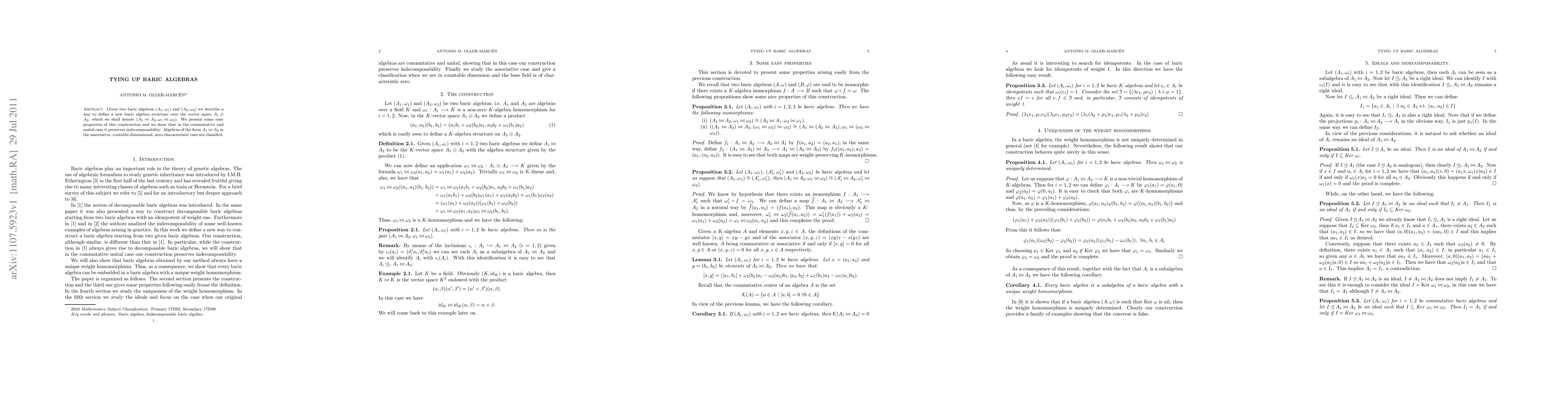 Given two baric algebras $(A_1,\omega_1)$ and $(A_2,\omega_2)$ we describe a way to define a new baric algebra structure over the vector space $A_1\oplus A_2$, which we shall denote $(A_1\bowtie A_2,\omega_1\bowtie\omega_2)$. We present some easy properties of this construction and we show that in the commutative and unital case it preserves indecomposability. Algebras of the form $A_1\bowtie A_2$ in the associative, coutable-dimensional, zero-characteristic case are classified.