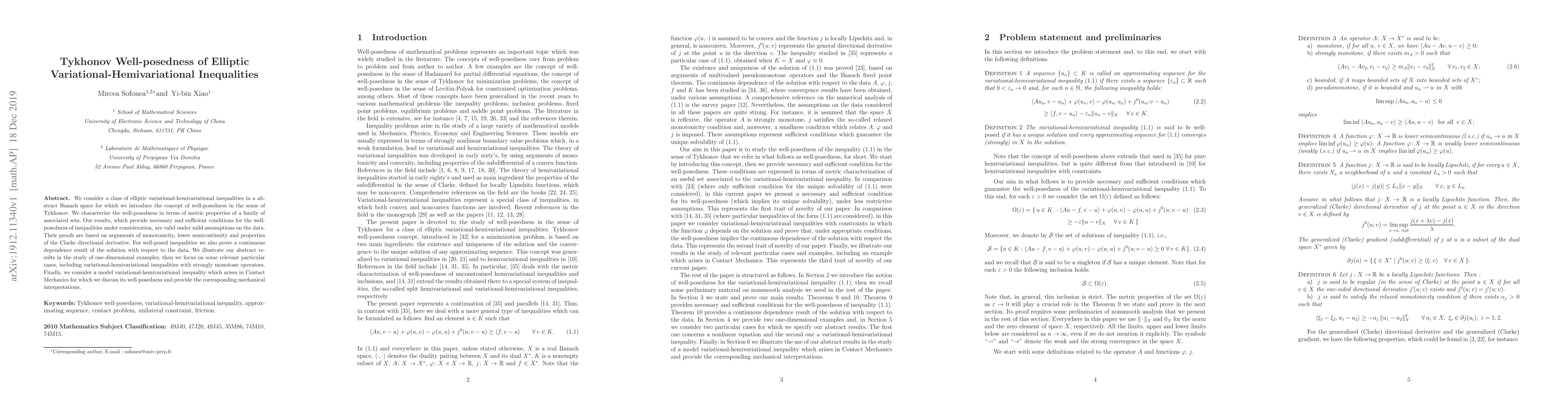 This paper introduces Tykhonov well-posedness for elliptic variational-hemivaria\-tional inequalities in Banach spaces, providing necessary and sufficient conditions under mild data assumptions. The study includes continuous dependence results and illustrates the theory with one-dimensional examples and applications in Contact Mechanics.