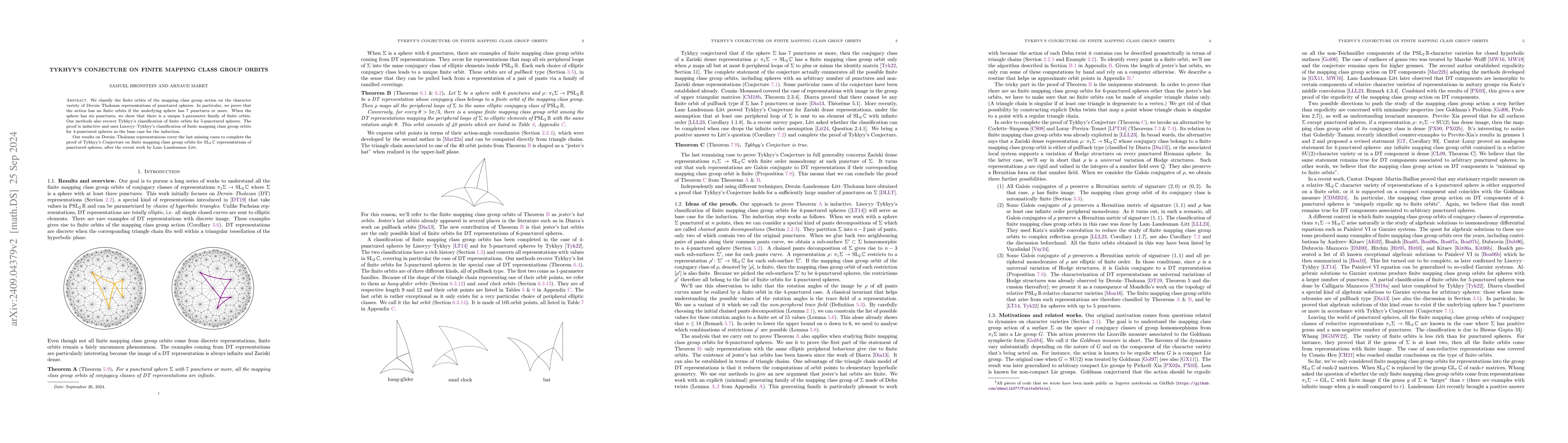 We classify the finite orbits of the mapping class group action on the character variety of Deroin--Tholozan representations of punctured spheres. In particular, we prove that the action has no finite orbits if the underlying sphere has 7 punctures or more. When the sphere has six punctures, we show that there is a unique 1-parameter family of finite orbits. Our methods also recover Tykhyy's classification of finite orbits for 5-punctured spheres. The proof is inductive and uses Lisovyy--Tykhyy's classification of finite mapping class group orbits for 4-punctured spheres as the base case for the induction. Our results on Deroin--Tholozan representations cover the last missing cases to complete the proof of Tykhyy's Conjecture on finite mapping class group orbits for $\mathrm{SL}_2\mathbb{C}$ representations of punctured spheres, after the recent work by Lam--Landesman--Litt.