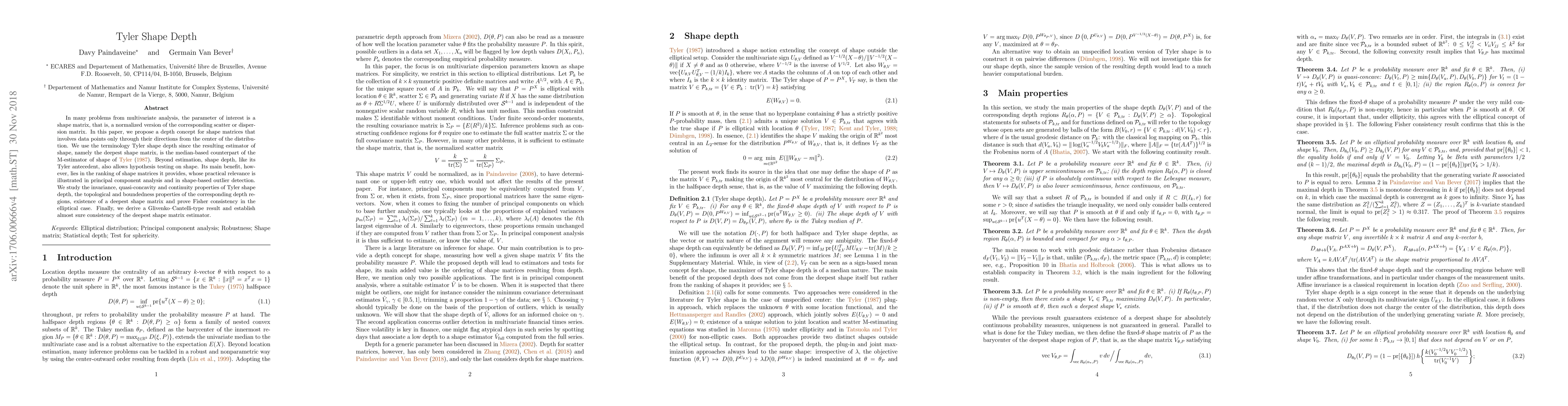 This paper introduces Tyler shape depth, a novel depth concept for shape matrices based on data directions, providing a median-based estimator for shape. It discusses its applications in ranking shape matrices, hypothesis testing, and practical relevance in PCA and outlier detection, while proving its theoretical properties and consistency.