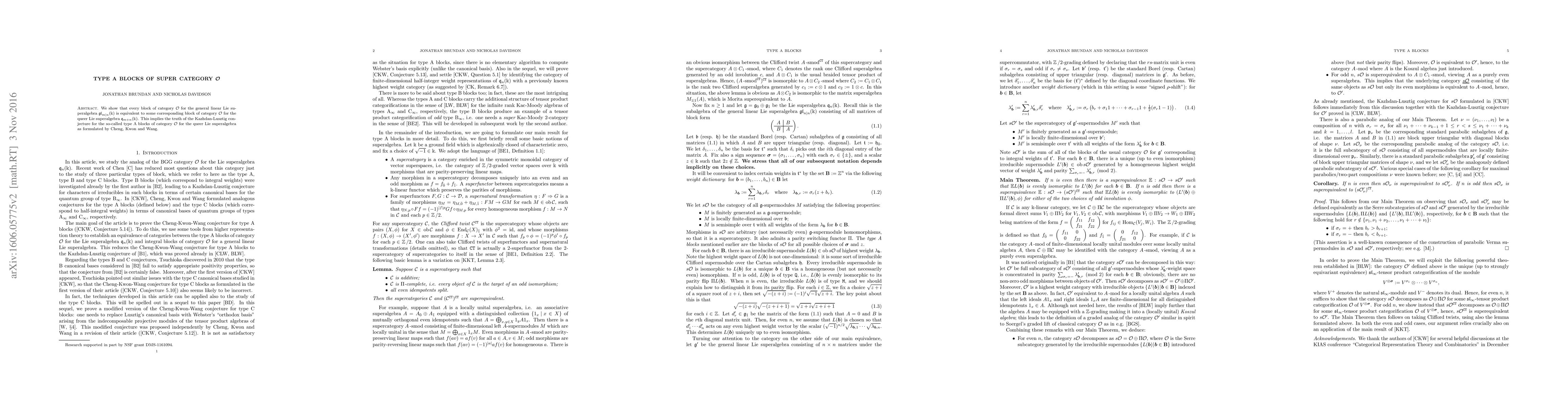 We show that every integral block of category O for the general linear Lie superalgebra is equivalent to a corresponding block of category O for the queer Lie superalgebra. This implies the truth of the Kazhdan-Lusztig conjecture for the so-called type A blocks of category O for the queer Lie superalgebra, as formulated by Cheng, Kwon and Wang.