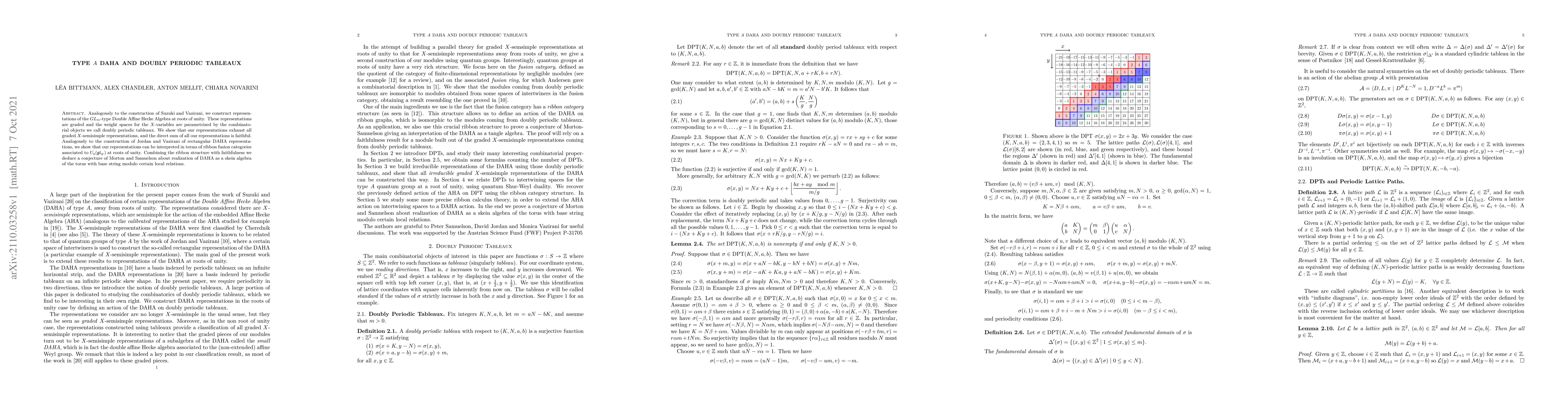 Analogously to the construction of Suzuki and Vazirani, we construct representations of the $GL_m$-type Double Affine Hecke Algebra at roots of unity. These representations are graded and the weight spaces for the $X$-variables are parametrized by the combinatorial objects we call doubly periodic tableaux. We show that our representations exhaust all graded $X$-semisimple representations, and the direct sum of all our representations is faithful. Analogously to the construction of Jordan and Vazirani of rectangular DAHA representations, we show that our representations can be interpreted in terms of ribbon fusion categories associated to $U_q(\mathfrak{gl}_N)$ at roots of unity. Combining the ribbon structure with faithfulness we deduce a conjecture of Morton and Samuelson about realization of DAHA as a skein algebra of the torus with base string modulo certain local relations.