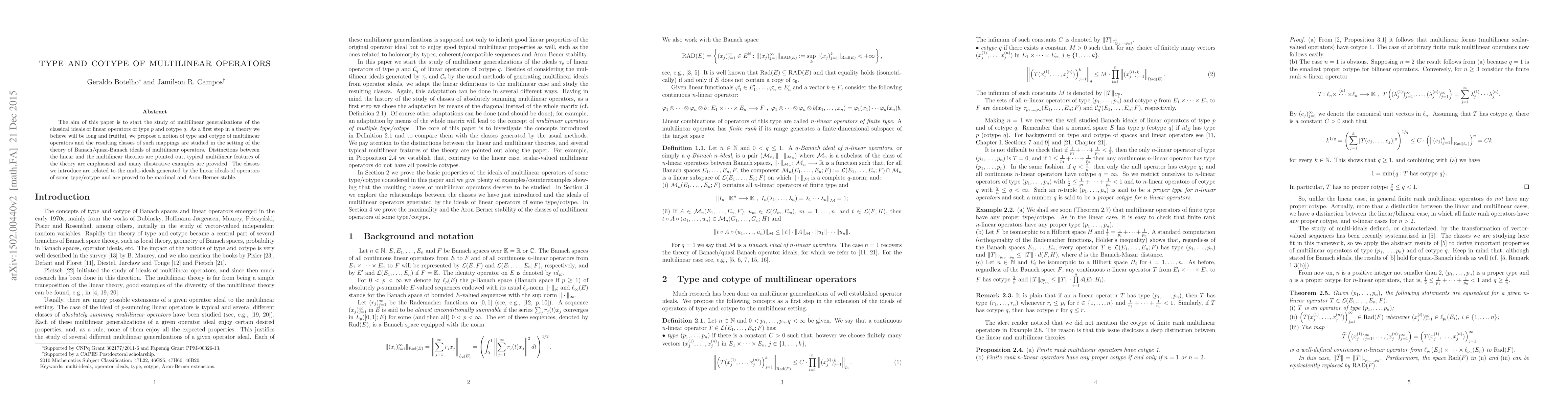 This paper introduces the concepts of type and cotype for multilinear operators, extending classical linear operator theory. It explores these new classes within the framework of Banach/quasi-Banach ideals, highlighting distinctions from linear theory and providing illustrative examples.