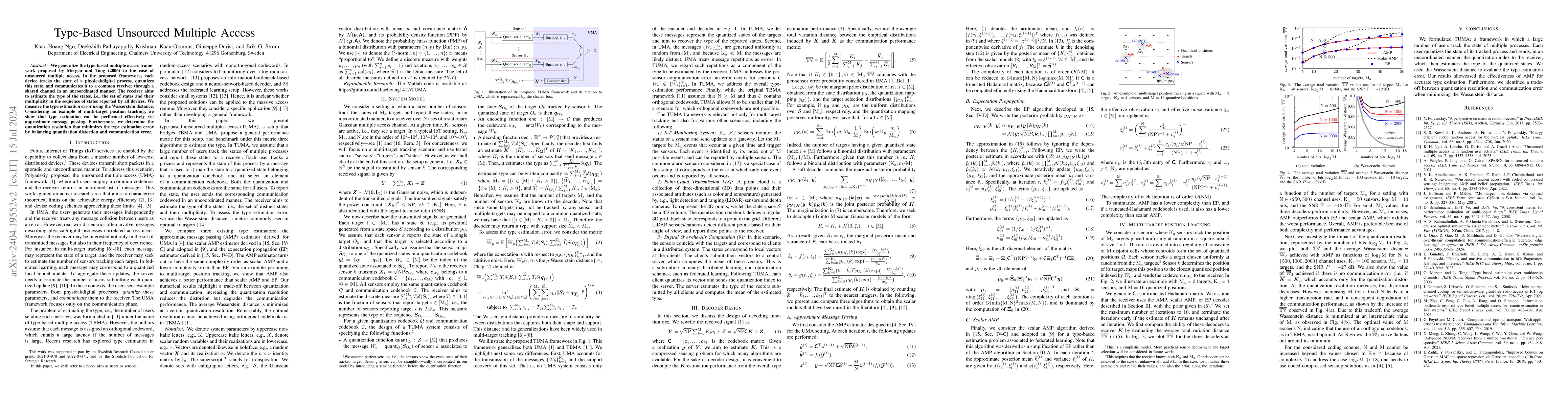 We generalize the type-based multiple access framework proposed by Mergen and Tong (2006) to the case of unsourced multiple access. In the proposed framework, each device tracks the state of a physical/digital process, quantizes this state, and communicates it to a common receiver through a shared channel in an uncoordinated manner. The receiver aims to estimate the type of the states, i.e., the set of states and their multiplicity in the sequence of states reported by all devices. We measure the type estimation error using the Wasserstein distance. Considering an example of multi-target position tracking, we show that type estimation can be performed effectively via approximate message passing. Furthermore, we determine the quantization resolution that minimizes the type estimation error by balancing quantization distortion and communication error.