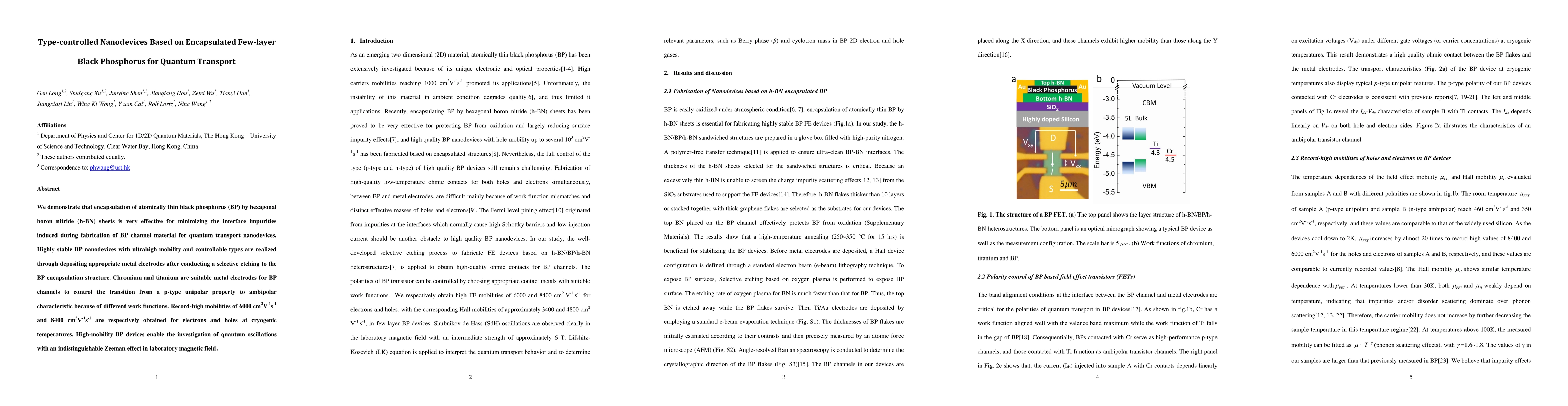 Researchers create type-controlled nanodevices using encapsulated black phosphorus, achieving record-high mobilities of 6000 $cm^2V^{-1}s^{-1}$ for electrons and holes.