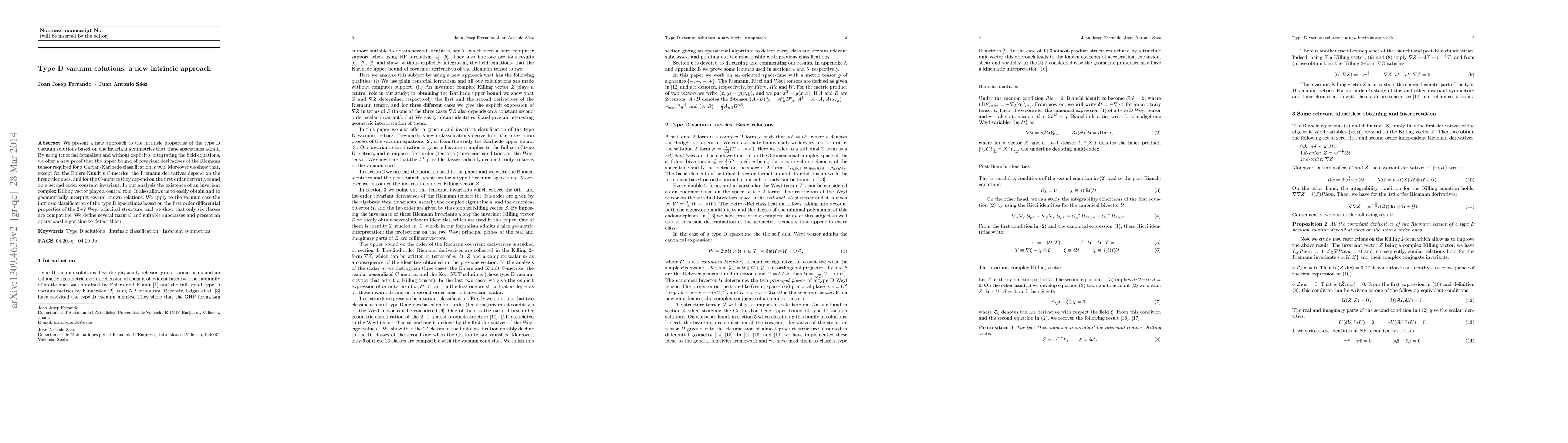 Researchers developed a new approach to understanding type D vacuum solutions, showing that only six classes of spacetimes are compatible with the first order differential properties of the 2+2 Weyl principal structure.
