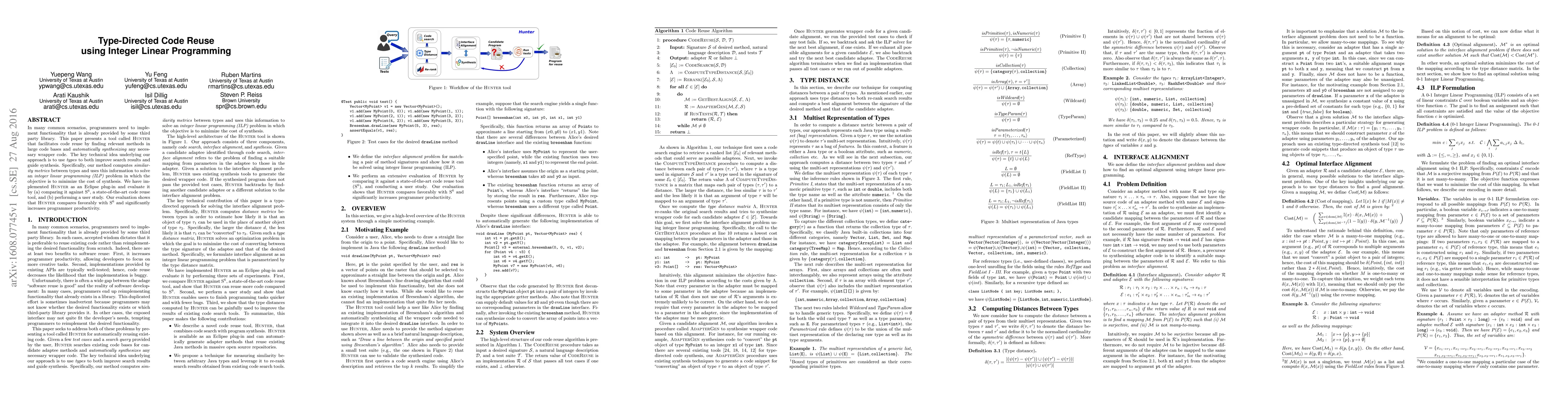 In many common scenarios, programmers need to implement functionality that is already provided by some third party library. This paper presents a tool called Hunter that facilitates code reuse by finding relevant methods in large code bases and automatically synthesizing any necessary wrapper code. The key technical idea underlying our approach is to use types to both improve search results and guide synthesis. Specifically, our method computes similarity metrics between types and uses this information to solve an integer linear programming (ILP) problem in which the objective is to minimize the cost of synthesis. We have implemented Hunter as an Eclipse plug-in and evaluate it by (a) comparing it against S6, a state-of-the-art code reuse tool, and (b) performing a user study. Our evaluation shows that Hunter compares favorably with S6 and significantly increases programmer productivity.