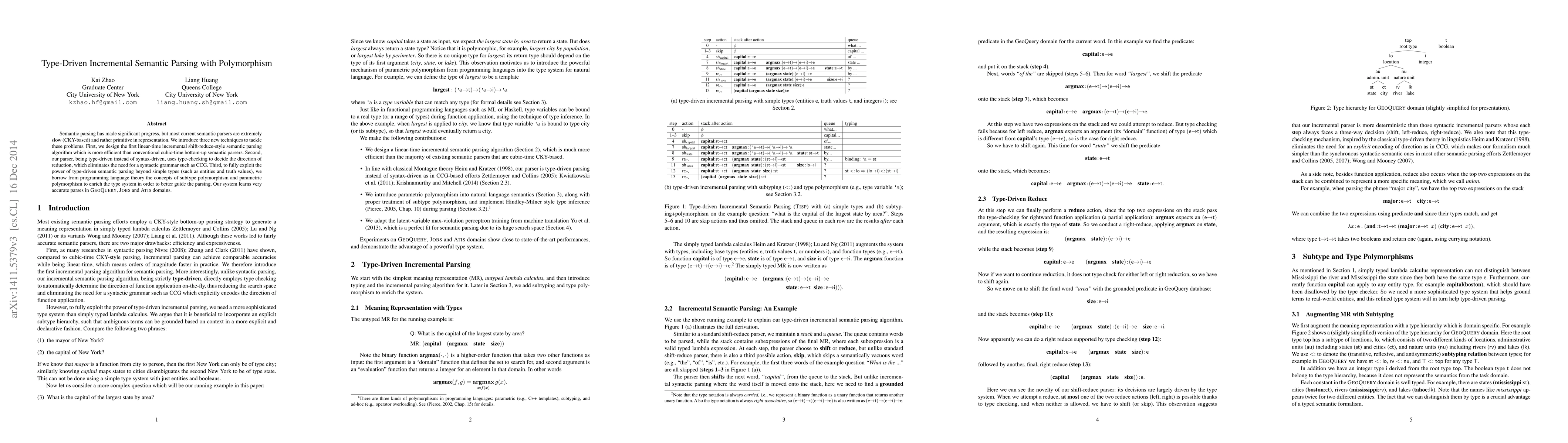 This research introduces a novel type-driven, linear-time incremental semantic parser that improves efficiency over traditional CKY-based parsers. It employs type-checking to guide reduction without relying on syntactic grammars and utilizes polymorphism to enhance the type system, achieving accurate parsing in various domains.
