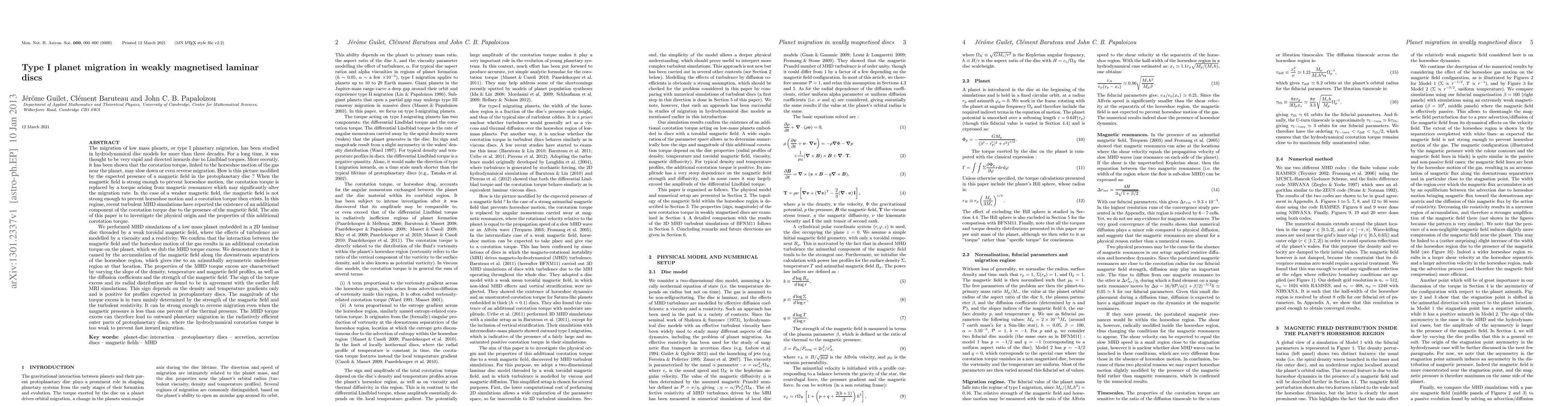 This paper investigates the impact of weak magnetic fields on the migration of low-mass planets in protoplanetary discs. Through MHD simulations, it confirms the existence of a new corotation torque, termed the 'MHD torque excess,' caused by magnetic field accumulation along horseshoe region separatrices. This torque can reverse migration even with low magnetic pressure, and its magnitude depends on magnetic field strength and turbulent resistivity.