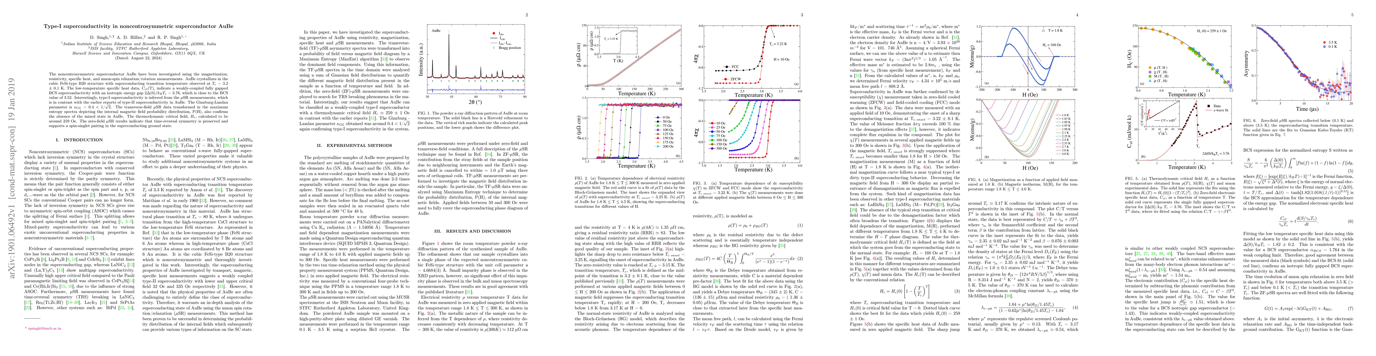 The research investigated the superconducting properties of the cubic noncentrosymmetric superconductor AuBe using magnetization, resistivity, specific heat, and muon-spin relaxation/rotation measurements.