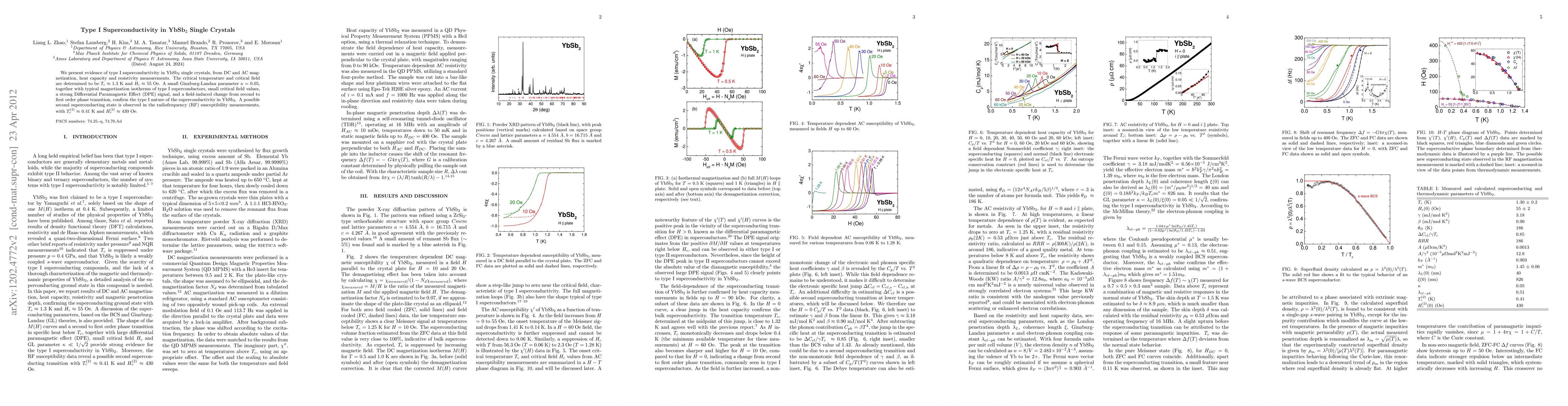 We present evidence of type I superconductivity in YbSb2 single crystals, from DC and AC magnetization, heat capacity and resistivity measurements. The critical temperature and critical field are determined to be $T_c\approx$ 1.3 K and $H_c\approx$ 55 Oe. A small Ginzburg-Landau parameter \kappa = 0.05, together with typical magnetization isotherms of type I superconductors, small critical field values, a strong Differential Paramagnetic Effect (DPE) signal, and a field-induced change from second to first order phase transition, confirm the type I nature of the superconductivity in YbSb2. A possible second superconducting state is observed in the radiofrequency (RF) susceptibility measurements, with $T_{c}^{(2)}\approx$ 0.41 K and $H_{c}^{(2)}\approx$ 430 Oe.