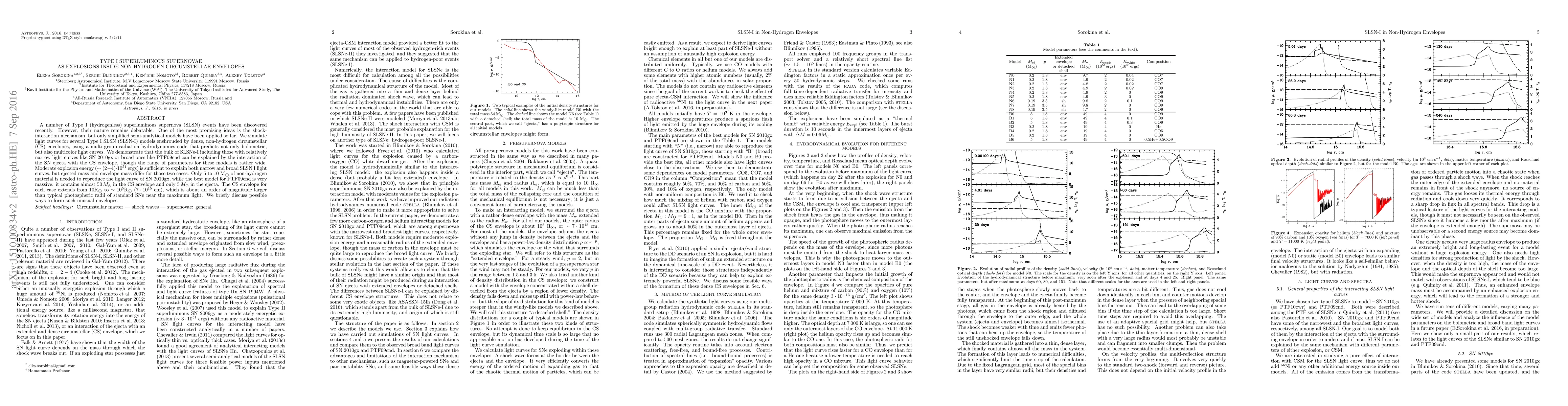 A number of Type I (hydrogenless) superluminous supernova (SLSN) events have been discovered recently. However, their nature remains debatable. One of the most promising ideas is the shock-interaction mechanism, but only simplified semi-analytical models have been applied so far. We simulate light curves for several Type I SLSN (SLSN-I) models enshrouded by dense, non-hydrogen circumstellar envelopes, using a multi-group radiation hydrodynamics code that predicts not only bolometric, but also multicolor light curves. We demonstrate that the bulk of SLSNe-I including those with relatively narrow light curves like SN 2010gx or broad ones like PTF09cnd can be explained by the interaction of the SN ejecta with he CS envelope, though the range of parameters for these models is rather wide. Moderate explosion energy ($\sim (2 - 4)\cdot 10^{51}$ ergs) is sufficient to explain both narrow and broad SLSN-I light curves, but ejected mass and envelope mass differ for those two cases. Only 5 to 10 $M_\odot$ of non-hydrogen material is needed to reproduce the light curve of SN 2010gx, while the best model for PTF09cnd is very massive: it contains almost $ 50 M_\odot $ in the CS envelope and only $ 5 M_\odot $ in the ejecta. The CS envelope for each case extends from 10 $R_\odot$ to $\sim 10^5R_\odot$ ($7\cdot 10^{15} $ cm), which is about an order of magnitude larger than typical photospheric radii of standard SNe near the maximum light. We briefly discuss possible ways to form such unusual envelopes.