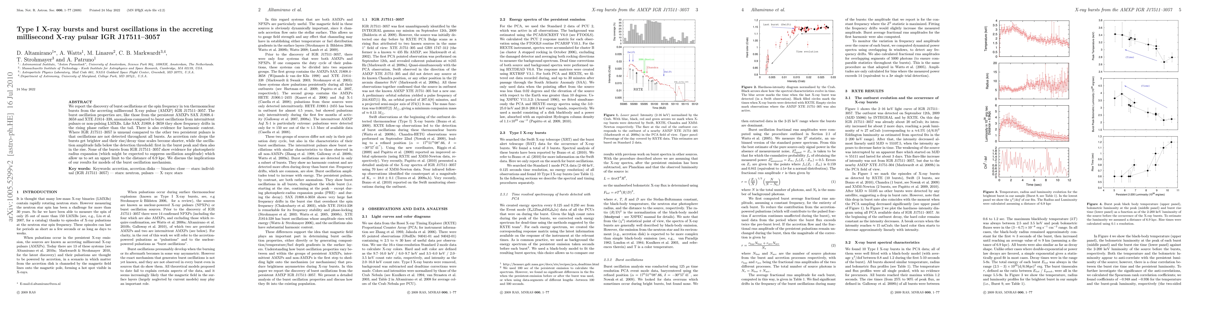 The research utilized RXTE observations of ten thermonuclear X-ray bursts from the accreting millisecond X-ray pulsar IGR J17511-3057, analyzing burst properties, oscillations, and spectral characteristics.