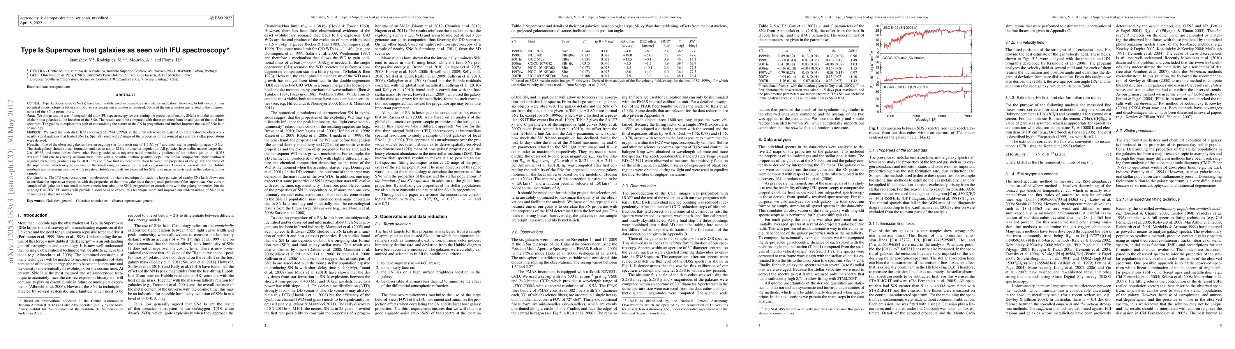(abridged) We used the wide-field IFU spectrograph PMAS/PPAK at the 3.5m telescope of Calar Alto Observatory to observe six nearby spiral galaxies that hosted SNe Ia. Spatially resolved 2D maps of the properties of the ionized gas and the stellar populations were derived. Five of the observed galaxies have an ongoing star formation rate of 1-5 M_sun/yr and mean stellar population ages ~5 Gyr. The sixth galaxy shows no star formation and has an about 12 Gyr old stellar population. All galaxies have stellar masses larger than 2E+10 M_sun and metallicities above solar. Four galaxies show negative radial metallicity gradients of the ionized gas up to -0.058 dex/kpc and one has nearly uniform metallicity with a possible shallow positive slope. The stellar components show shallower negative metallicity gradients up to -0.03 dex/kpc. We find no clear correlation between the properties of the galaxy and those of the supernovae, which may be because of the small ranges spanned by the galaxy parameters. However, we note that the Hubble residuals are on average positive while negative Hubble residuals are expected for SNe Ia in massive hosts such as the galaxies in our sample. In conclusion, IFU spectroscopy on 4-m telescopes is a viable technique for studying host galaxies of nearby SNe Ia. It allows one to correlate the supernova properties with the properties of their host galaxies at the projected positions of the supernovae. Our current sample of six galaxies is too small to draw conclusions about the SN Ia progenitors or correlations with the galaxy properties, but the ongoing CALIFA IFU survey will provide a solid basis to exploit this technique more and improve our understanding of SNe Ia as cosmological standard candles.