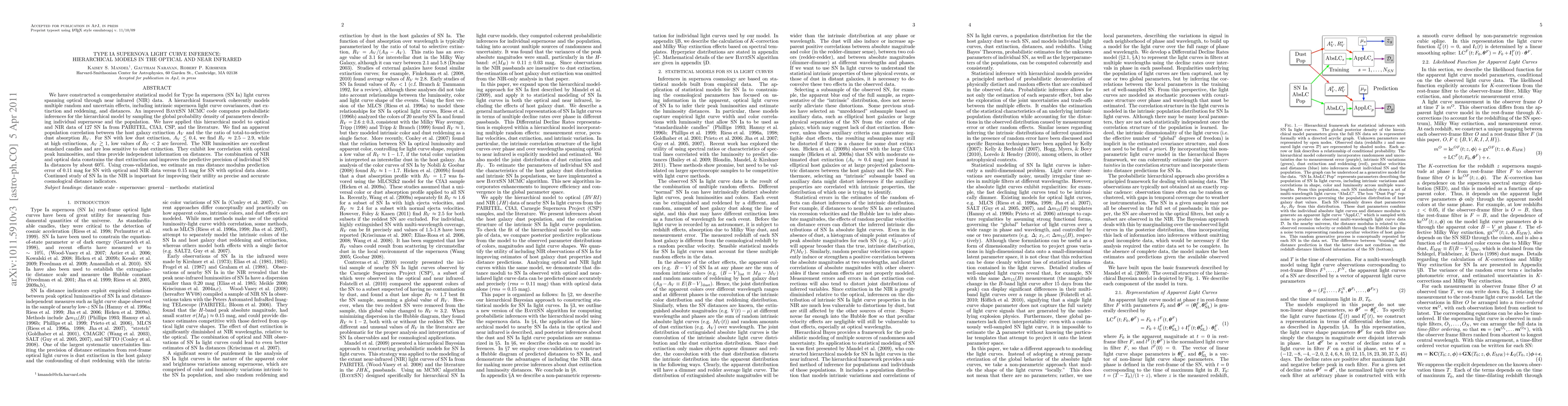 This paper develops a hierarchical statistical model to analyze Type Ia supernova light curves across optical and near-infrared data, revealing a population correlation between host galaxy extinction and dust absorption ratios. The model improves distance estimation precision by 60% when combining NIR and optical data.
