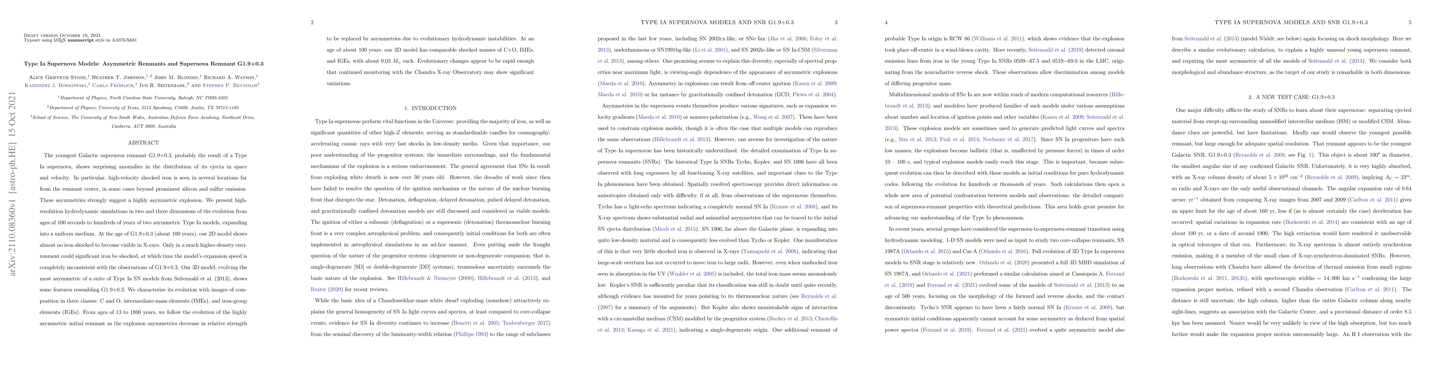 This paper explores the asymmetric remnants of a Type Ia supernova, specifically the young Galactic remnant G1.9+0.3, which exhibits unusual ejecta distribution and high-velocity iron. The study uses high-resolution simulations to model the evolution of asymmetric Type Ia supernovae, finding that while a 2D model does not match the observations, a 3D model shows features resembling G1.9+0.3, suggesting the need for highly asymmetric initial explosions.