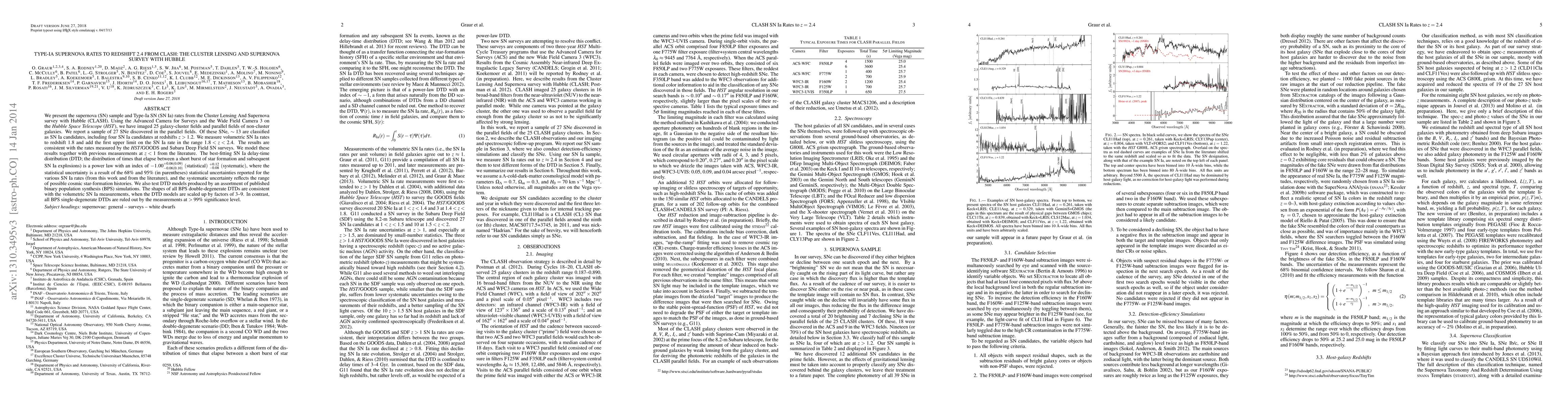 This paper reports on Type-Ia supernova rates up to redshift 2.4 from the CLASH survey using Hubble Space Telescope data, discovering 27 supernovae, including 13 Type-Ia candidates. The study provides new upper limits on SN Ia rates and finds consistency with previous surveys, supporting a power-law SN Ia delay-time distribution and ruling out single-degenerate models in favor of double-degenerate models.