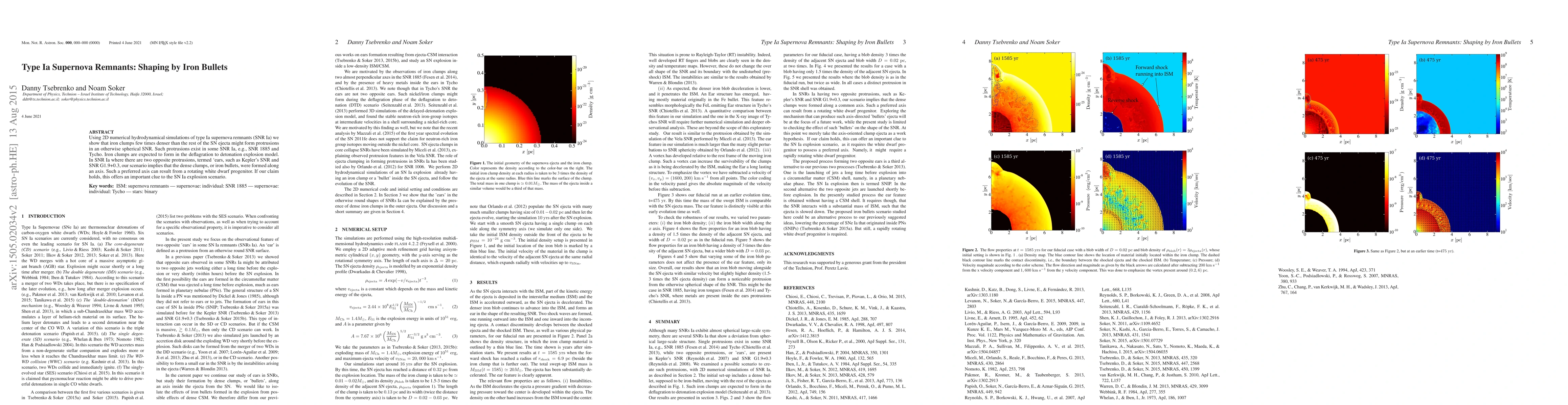 Using 2D numerical hydrodynamical simulations of type Ia supernova remnants (SNR Ia) we show that iron clumps few times denser than the rest of the SN ejecta might form protrusions in an otherwise spherical SNR. Such protrusions exist in some SNR Ia, e.g., SNR 1885 and Tycho. Iron clumps are expected to form in the deflagration to detonation explosion model. In SNR Ia where there are two opposite protrusions, termed ears, such as Kepler's SNR and SNR G1.9+0.3, our scenario implies that the dense clumps, or iron bullets, were formed along an axis. Such a preferred axis can result from a rotating white dwarf progenitor. If our claim holds, this offers an important clue to the SN Ia explosion scenario.
