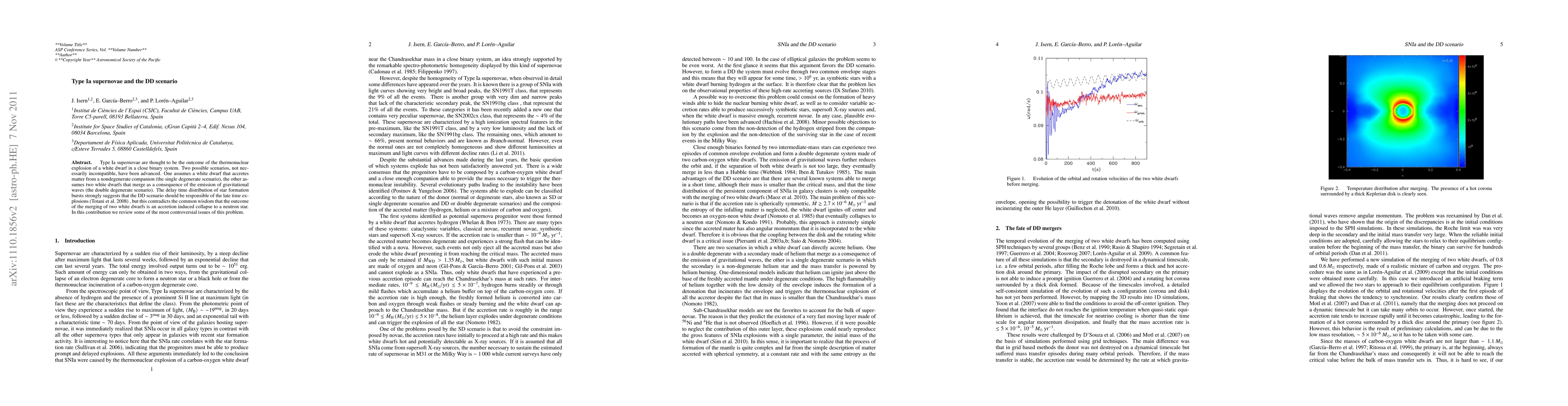 Type Ia supernovae are thought to be the outcome of the thermonuclear explosion of a white dwarf in a close binary system. Two possible scenarios, not necessarily incompatible, have been advanced. One assumes a white dwarf that accretes matter from a nondegenerate companion (the single degenerate scenario), the other assumes two white dwarfs that merge as a consequence of the emission of gravitational waves (the double degenerate scenario). The delay time distribution of star formation bursts strongly suggests that the DD scenario should be responsible of the late time explosions, but this contradicts the common wisdom that the outcome of the merging of two white dwarfs is an accretion induced collapse to a neutron star. In this contribution we review some of the most controversial issues of this problem.
