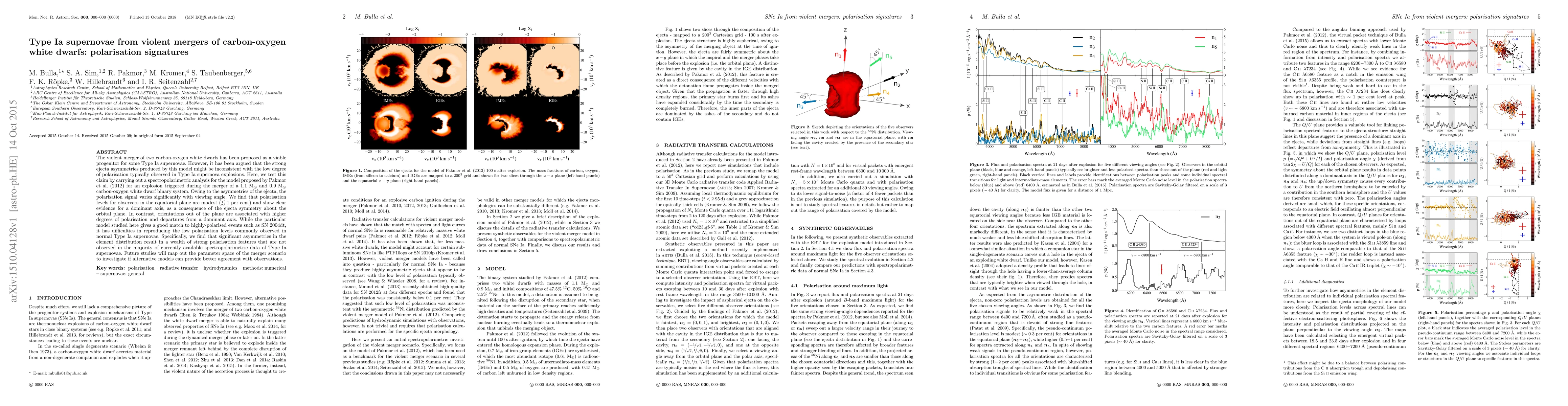 This paper investigates the polarisation signatures of Type Ia supernovae resulting from the merger of carbon-oxygen white dwarfs, finding that while the model can reproduce highly polarised events, it struggles to match the low polarisation levels typical of normal Type Ia supernovae due to strong ejecta asymmetries. Future research will explore alternative models to better align with observational data.