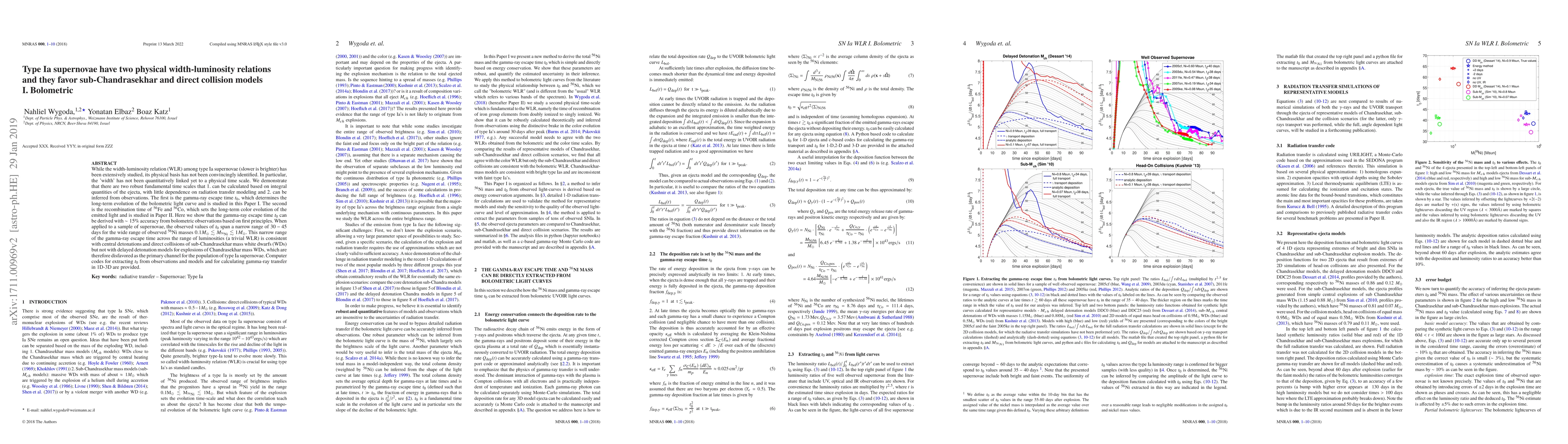 This research identifies two fundamental time scales linked to Type Ia supernovae' width-luminosity relation, namely the gamma-ray escape time $t_0$ and the recombination time of $^{56}$Fe and $^{56}$Co. The study demonstrates that $t_0$ can be accurately derived from bolometric observations and is consistently narrow (30-45 days) for a wide range of $^{56} m Ni$ masses. This narrow range supports sub-Chandrasekhar and direct collision models of white dwarfs, disfavoring delayed detonation models of Chandrasekhar mass WDs as the primary channel for Type Ia supernovae.