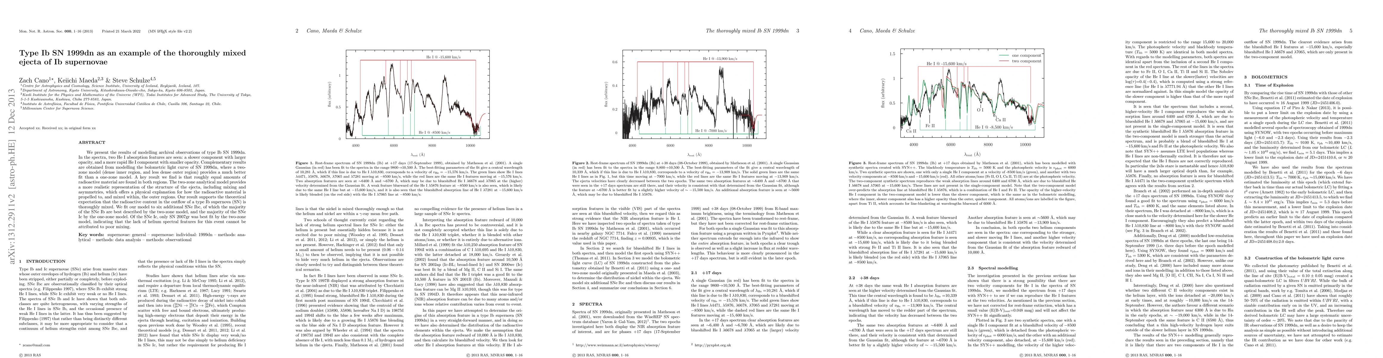 We present the results of modelling archival observations of type Ib SN 1999dn. In the spectra, two He I absorption features are seen: a slower component with larger opacity, and a more rapid He I component with smaller opacity. Complementary results are obtained from modelling the bolometric light curve of SN 1999dn, where a two-zone model (dense inner region, and less dense outer region) provides a much better fit than a one-zone model. A key result we find is that roughly equal amounts of radioactive material are found in both regions. The two-zone analytical model provides a more realistic representation of the structure of the ejecta, including mixing and asymmetries, which offers a physical explanation for how the radioactive material is propelled to, and mixed within, the outer regions. Our result supports the theoretical expectation that the radioactive content in the outflow of a type Ib supernova (SN) is thoroughly mixed. We fit our model to six additional SNe Ibc, of which the majority of the SNe Ib are best described by the two-zone model, and the majority of the SNe Ic by the one-zone model. Of the SNe Ic, only SN 2007gr was best fit by the two-zone model, indicating that the lack of helium spectral features for this event cannot be attributed to poor mixing.