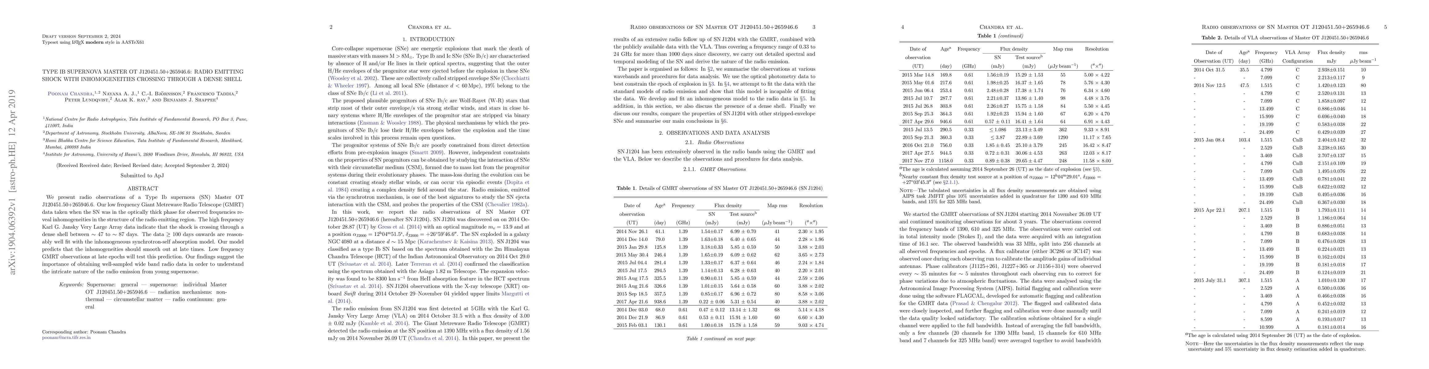 We present radio observations of a Type Ib supernova (SN) Master OT J120451.50+265946.6. Our low frequency Giant Metrewave Radio Telescope (GMRT) data taken when the SN was in the optically thick phase for observed frequencies reveal inhomogeneities in the structure of the radio emitting region. The high frequency Karl G. Jansky Very Large Array data indicate that the shock is crossing through a dense shell between $\sim$ 47 to $\sim 87$ days. The data $\ge 100$ days onwards are reasonably well fit with the inhomogeneous synchrotron-self absorption model. Our model predicts that the inhomogeneities should smooth out at late times. Low frequency GMRT observations at late epochs will test this prediction. Our findings suggest the importance of obtaining well-sampled wide band radio data in order to understand the intricate nature of the radio emission from young supernovae.