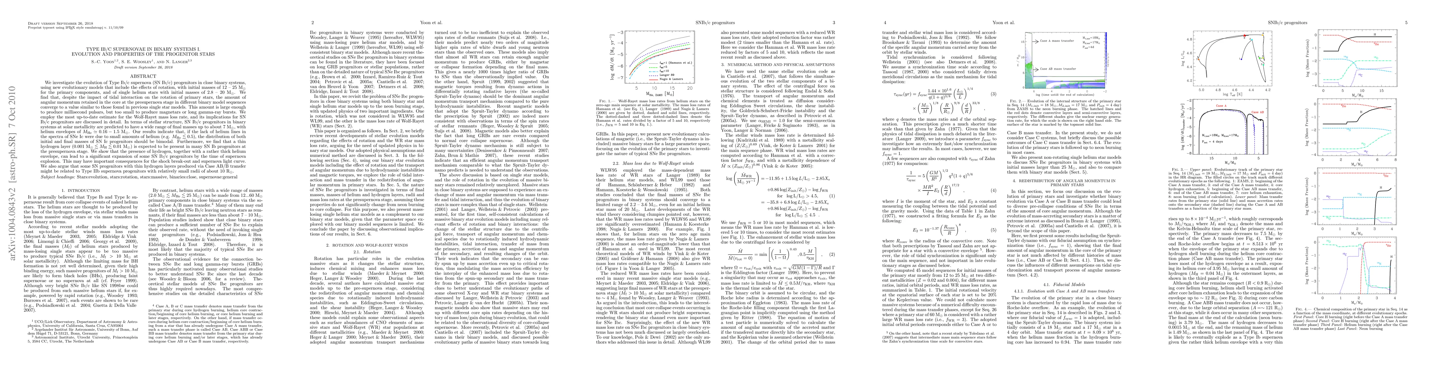 We investigate the evolution of Type Ib/c supernova (SN Ib/c) progenitors in close binary systems, using new evolutionary models that include the effects of rotation, with initial masses of 12 - 25 Msun for the primary components, and of single helium stars with initial masses of 2.8 - 20 Msun. We find that, despite the impact of tidal interaction on the rotation of primary stars, the amount of angular momentum retained in the core at the presupernova stage in different binary model sequences converge to a value similar to those found in previous single star models. This amount is large enough to produce millisecond pulsars, but too small to produce magnetars or long gamma-ray bursts. We employ the most up-to-date estimate for the Wolf-Rayet mass loss rate, and its implications for SN Ib/c progenitors are discussed in detail. In terms of stellar structure, SN Ib/c progenitors in binary systems are predicted to have a wide range of final masses even up to 7 Msun, with helium envelopes of 0.16 - 1.5 Msun. Our results indicate that, if the lack of helium lines in the spectra of SNe Ic were due to small amounts of helium, the distribution of both initial and final masses of SN Ic progenitors should be bimodal. Furthermore, we find that a thin hydrogen layer (0.001 - 0.01 Msun) is expected to be present in many SN Ib progenitors at the presupernova stage. We show that the presence of hydrogen, together with a rather thick helium envelope, can lead to a significant expansion of some SN Ib/c progenitors by the time of supernova explosion. This may have important consequences for the shock break-out and supernova light curve. We also argue that some SN progenitors with thin hydrogen layers produced via Case AB/B transfer might be related to Type IIb supernova progenitors with relatively small radii of about 10 Rsun.