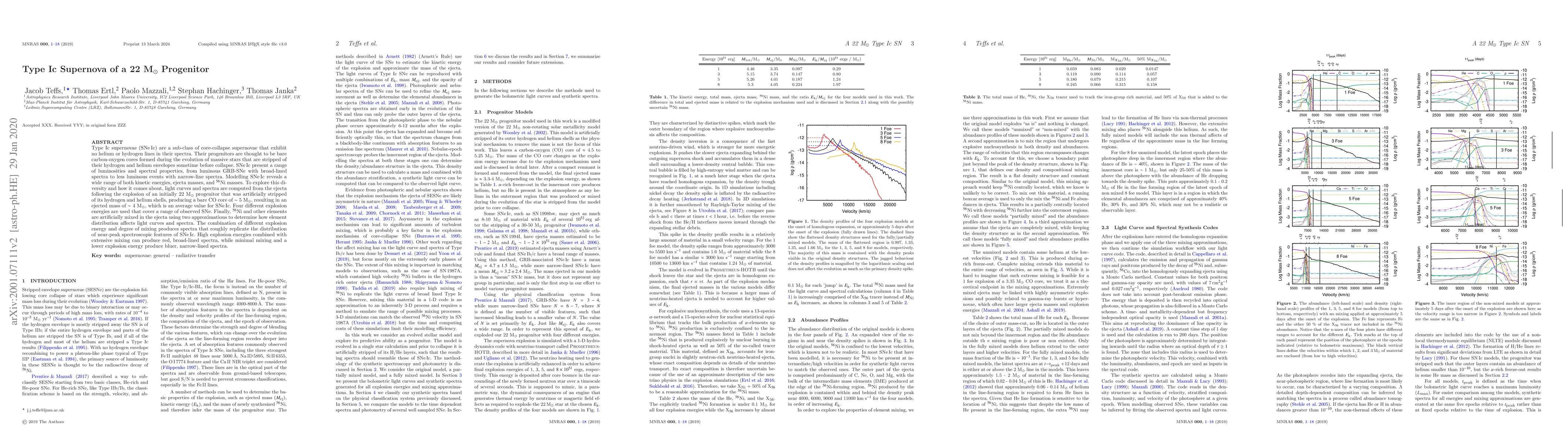 Researchers explored the diversity of Type Ic supernovae by modeling a 22M° progenitor stripped of its hydrogen and helium shells, finding that varying explosion energies and element mixing can produce a range of spectra from broad-lined to narrow-lined.