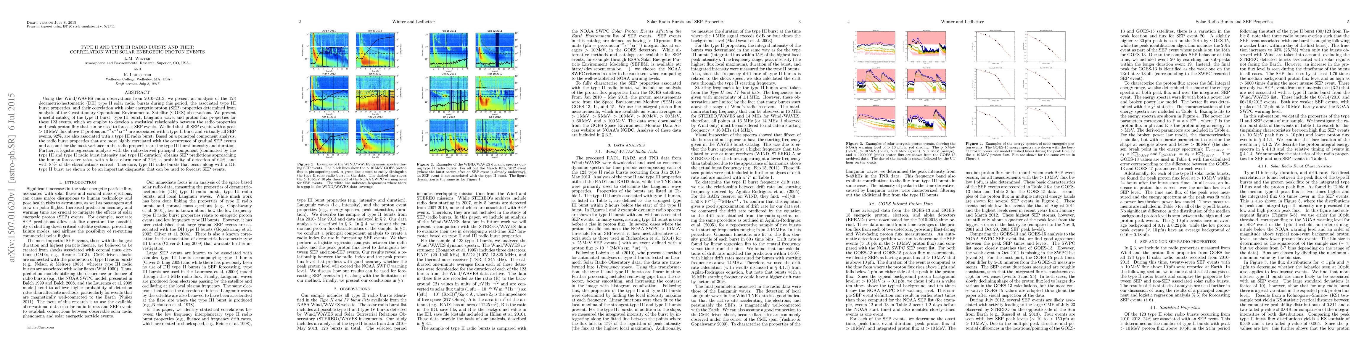 This study analyzes 123 type II and type III solar radio bursts from 2010-2013, correlating them with solar energetic proton events (SEPs) observed by GOES. It finds that SEP events with peak proton flux > 10 MeV are strongly associated with type II bursts, and 92% with type III bursts, suggesting these radio bursts are key diagnostic tools for SEP forecasting.