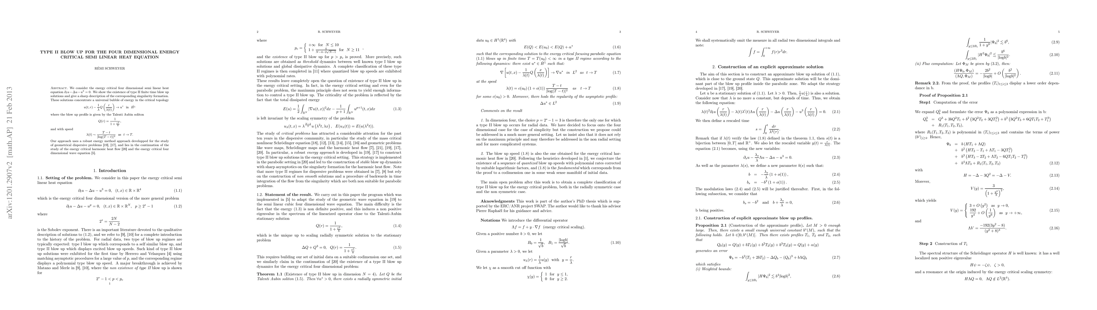 We consider the energy critical four dimensional semi linear heat equation \partial tu-\Deltau-u3 = 0. We show the existence of type II finite time blow up solutions and give a sharp description of the corresponding singularity formation. These solutions concentrate a universal bubble of energy in the critical topology u(t,r)-1/{\lambda} Q(r/{\lambda})\rightarrow u* in $\dot{H}^1$ where the blow up profile is given by the Talenti Aubin soliton Q(r)= 1/(1 +r^2/8) and with speed {\lambda}(t) ~(T-t)/|log(T - t)|^2 as t\rightarrowT. Our approach uses a robust energy method approach developped for the study of geometrical dispersive problems, and lies in the continuation of the study of the energy critical harmonic heat flow and the energy critical four dimensional wave equation.