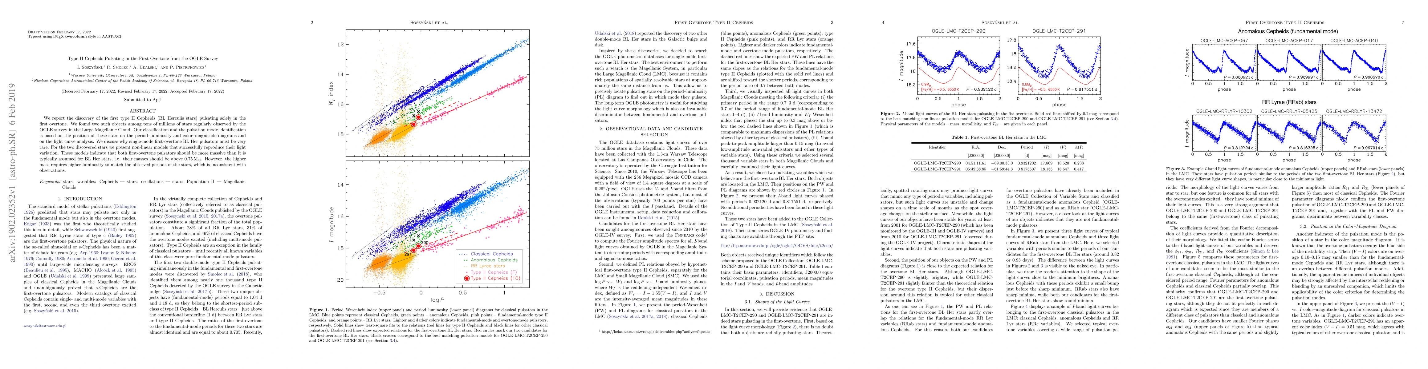 Researchers have discovered two type II Cepheids stars pulsating in their first overtone using data from the OGLE survey, challenging current assumptions about BL Herculis star masses.