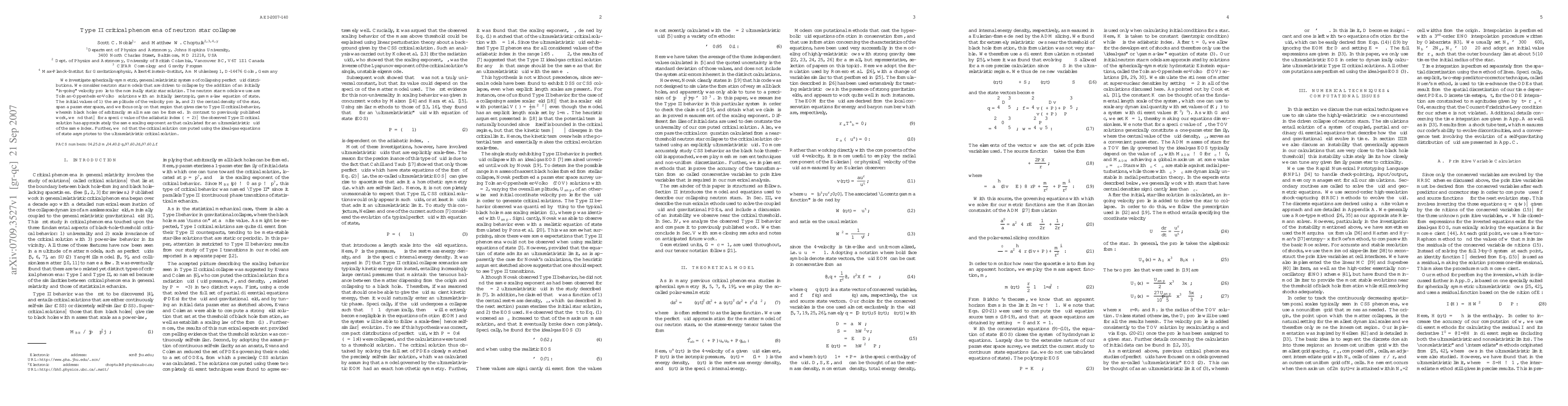 We investigate spherically-symmetric, general relativistic systems of collapsing perfect fluid distributions. We consider neutron star models that are driven to collapse by the addition of an initially "in-going" velocity profile to the nominally static star solution. The neutron star models we use are Tolman-Oppenheimer-Volkoff solutions with an initially isentropic, gamma-law equation of state. The initial values of 1) the amplitude of the velocity profile, and 2) the central density of the star, span a parameter space, and we focus only on that region that gives rise to Type II critical behavior, wherein black holes of arbitrarily small mass can be formed. In contrast to previously published work, we find that--for a specific value of the adiabatic index (Gamma = 2)--the observed Type II critical solution has approximately the same scaling exponent as that calculated for an ultrarelativistic fluid of the same index. Further, we find that the critical solution computed using the ideal-gas equations of state asymptotes to the ultrarelativistic critical solution.