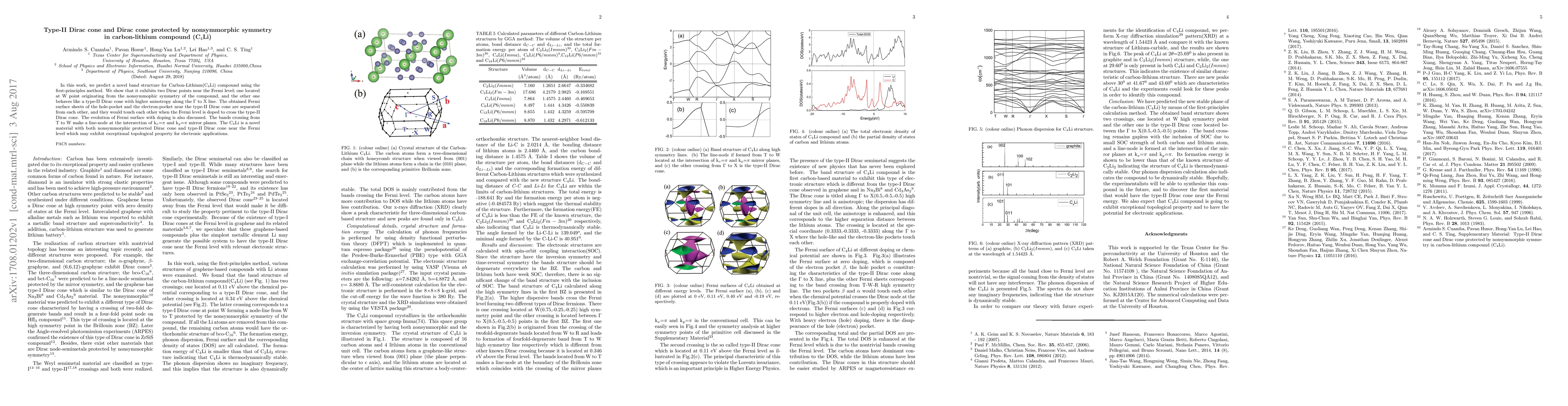 This research predicts a novel band structure for the Carbon-Lithium (C4Li) compound featuring two Dirac points near the Fermi level, one protected by nonsymmorphic symmetry and the other exhibiting a type-II Dirac cone with high anisotropy. The material may possess exceptional topological properties for electronic applications.