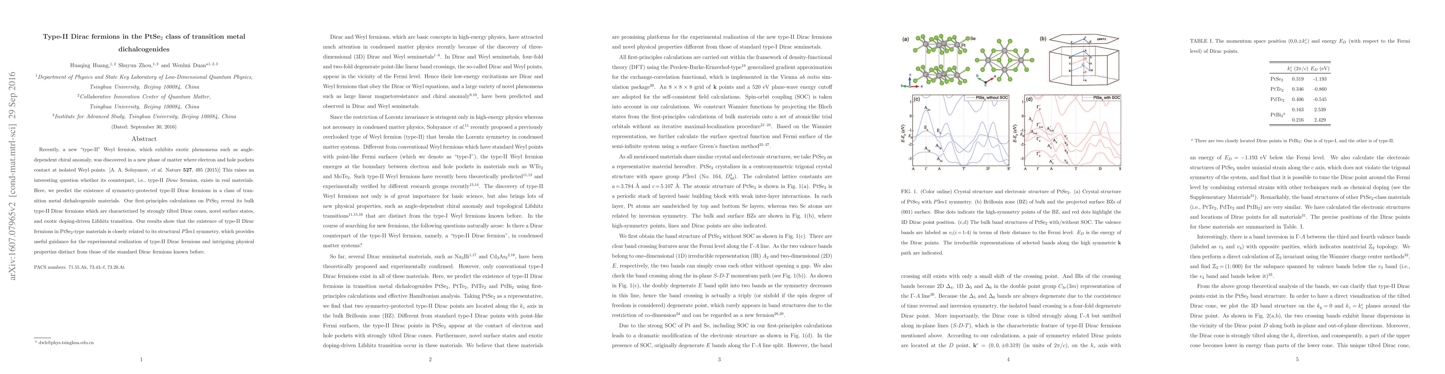 This paper predicts the existence of symmetry-protected type-II Dirac fermions in PtSe$_2$, a transition metal dichalcogenide, characterized by strongly tilted Dirac cones and novel surface states. The study highlights the material's structural $P\bar{3}m1$ symmetry, offering insights for experimental realization and unique physical properties.