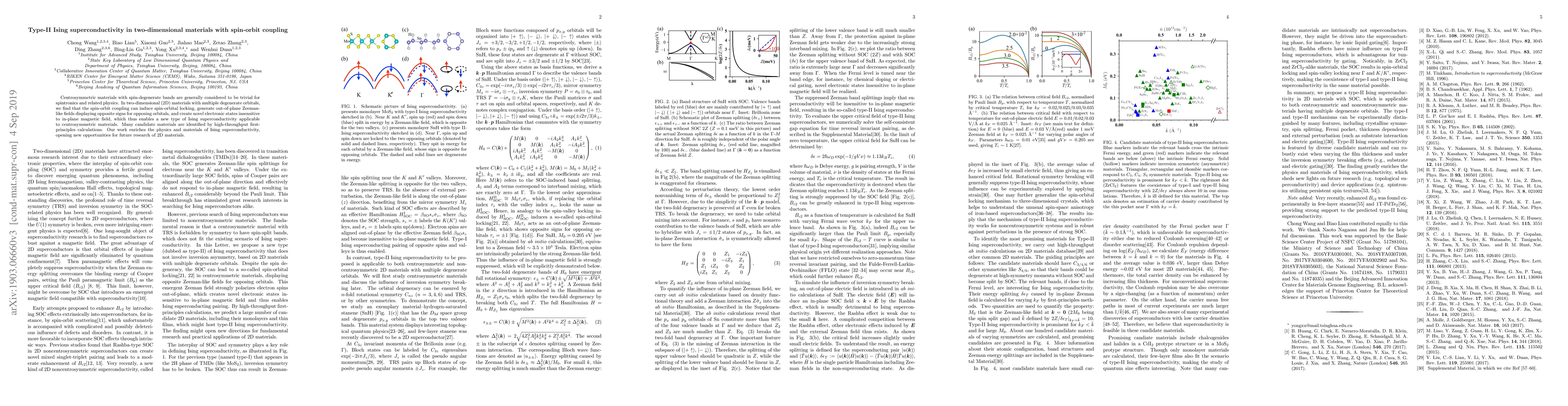 This paper proposes a new type of Ising superconductivity, termed type-II, in two-dimensional centrosymmetric materials with $C_{nz}$ rotational symmetry. Unlike previous Ising superconductivity, type-II relies on spin-orbital locking via spin-orbit coupling, offering potential for a broader range of materials.