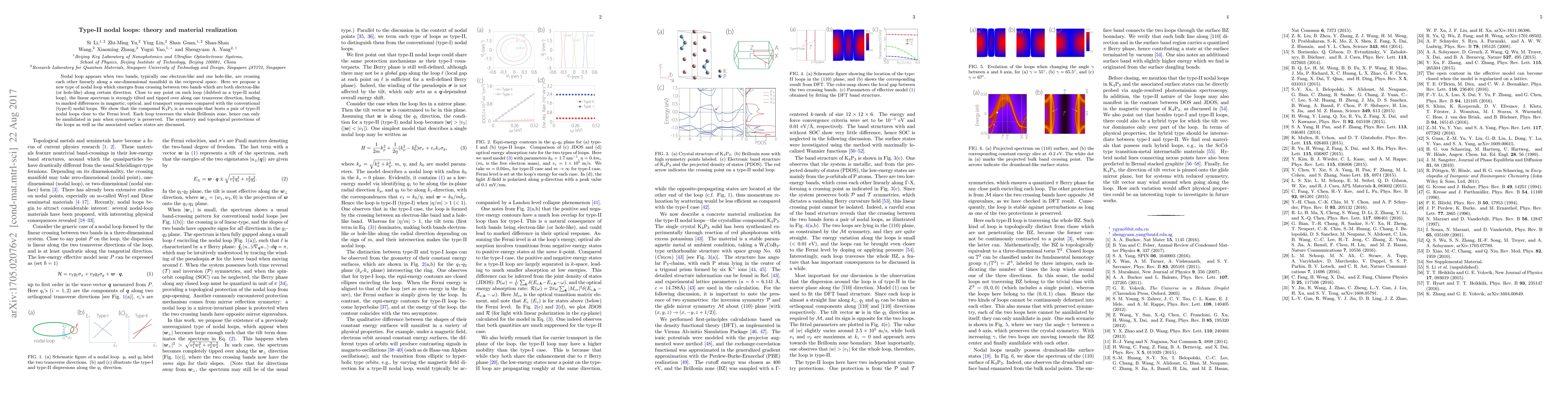 Nodal loop appears when two bands, typically one electron-like and one hole-like, are crossing each other linearly along a one-dimensional manifold in the reciprocal space. Here we propose a new type of nodal loop which emerges from crossing between two bands which are both electron-like (or hole-like) along certain direction. Close to any point on such loop (dubbed as a type-II nodal loop), the linear spectrum is strongly tilted and tipped over along one transverse direction, leading to marked differences in magnetic, optical, and transport responses compared with the conventional (type-I) nodal loops. We show that the compound K4P3 is an example that hosts a pair of type-II nodal loops close to the Fermi level. Each loop traverses the whole Brillouin zone, hence can only be annihilated in pair when symmetry is preserved. The symmetry and topological protections of the loops as well as the associated surface states are discussed.
