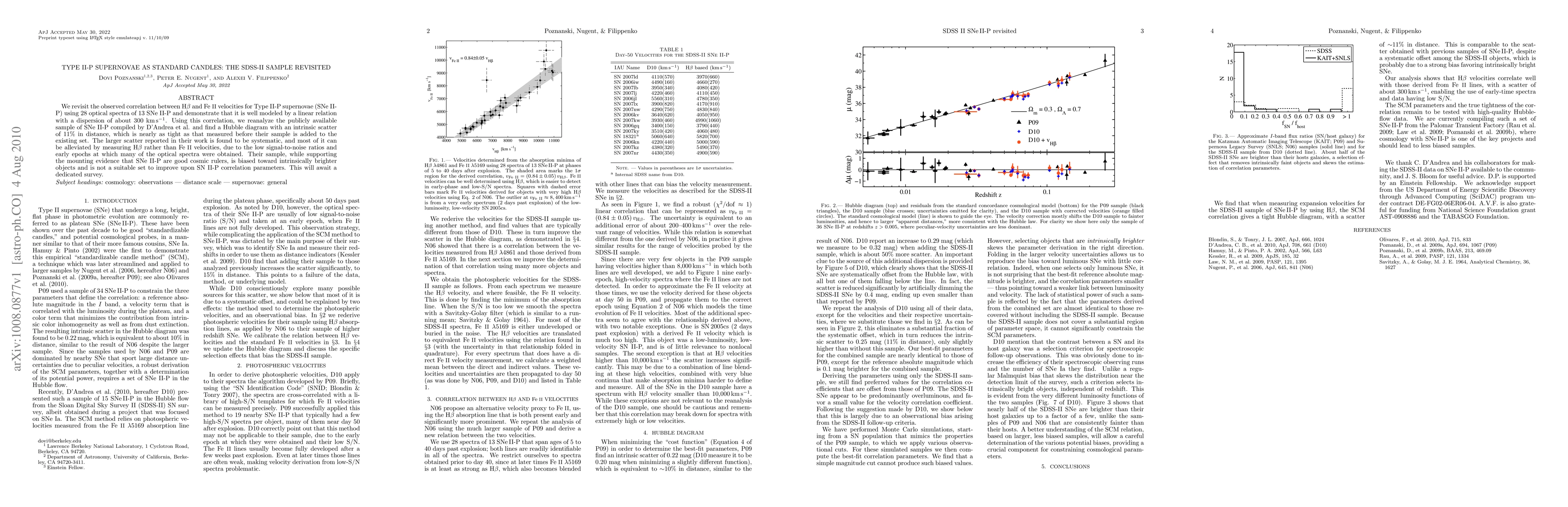 This paper revisits the correlation between Hbeta and FeII velocities in Type II-P supernovae, finding a linear relation with a dispersion of 300 km/s. It reanalyzes a public sample of SNe II-P, revealing an intrinsic scatter of 11% in distance, indicating that SNe II-P can serve as reliable standard candles.