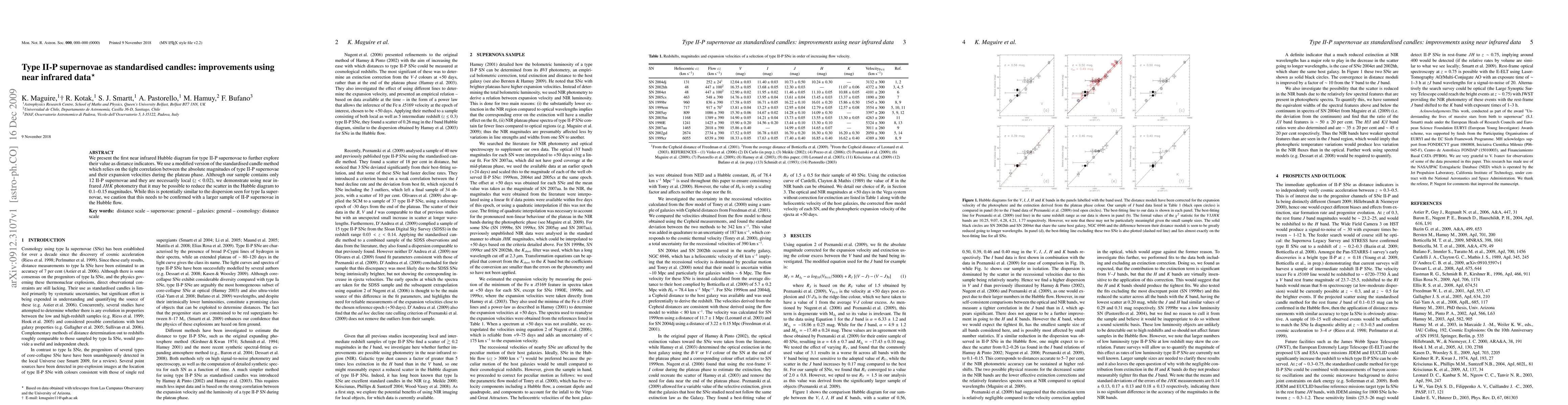 This paper explores type II-P supernovae as distance indicators using near infrared data, presenting a modified standardised candle method. Near infrared JHK photometry reduces the scatter in the Hubble diagram to 0.1-0.15 magnitudes, though this needs validation with a larger sample.
