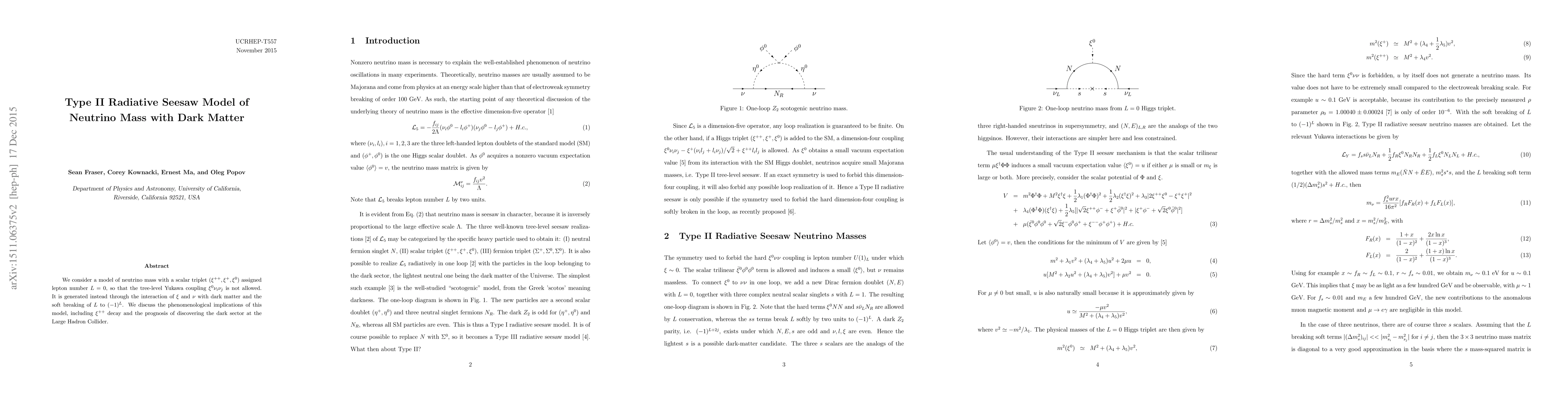 This research proposes a Type II Radiative Seesaw Model for neutrino mass generation involving a scalar triplet interacting with dark matter. The model avoids tree-level Yukawa coupling, generating it via dark matter interaction and lepton number violation, with implications for collider searches at the Large Hadron Collider.