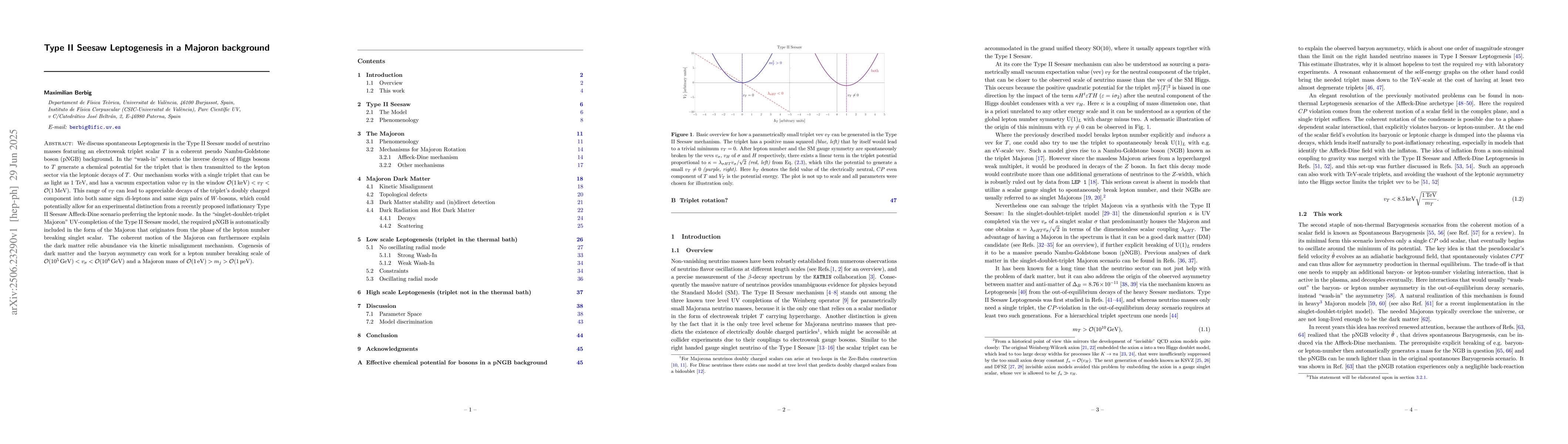 We discuss spontaneous Leptogenesis in the Type II Seesaw model of neutrino