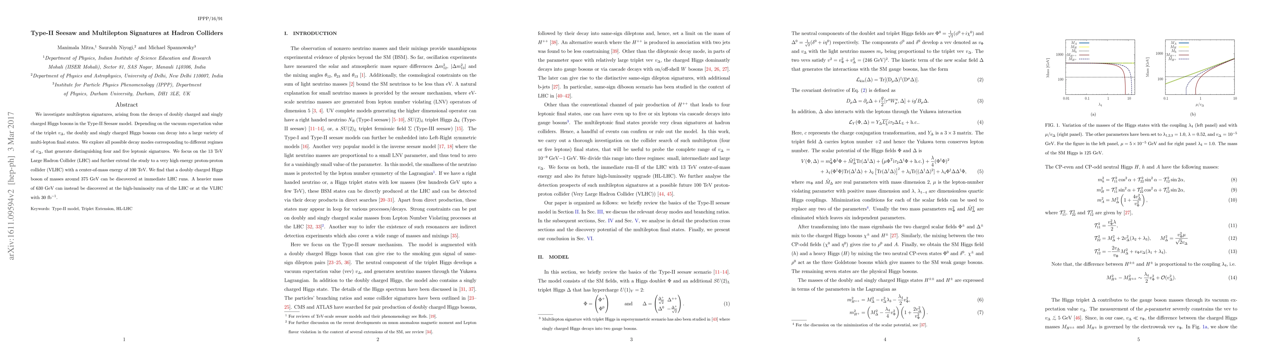 The paper presents a comprehensive analysis of multilepton signatures from charged Higgs bosons in the Type-II Seesaw model, considering different regimes of $v_{\Delta}$ and their implications for LHC and VLHC discoverability.