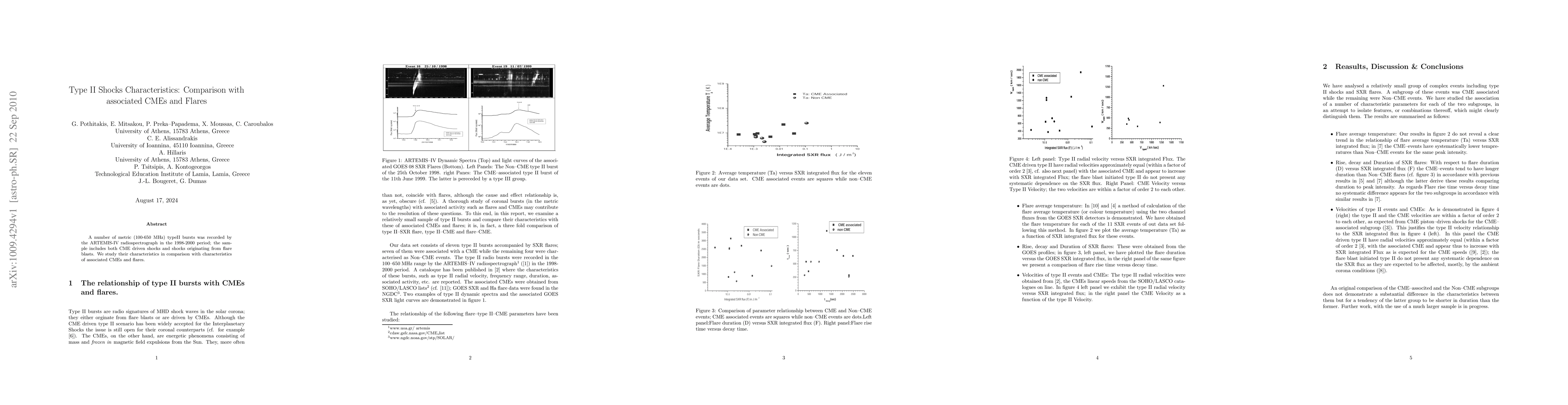 Summary: This study analyzes type II shocks recorded in the 1998-2000 period using the ARTEMIS-IV radiospectrograph, comparing their characteristics with those of associated coronal mass ejections (CMEs) and solar flares. The research aims to understand the differences between shocks driven by CMEs and those originating from flare activity.