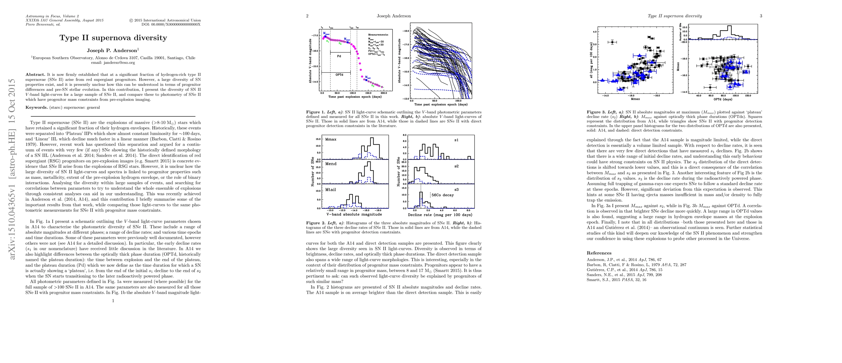 It is now firmly established that at a significant fraction of hydrogen-rich type II supernovae (SNe II) arise from red supergiant progenitors. However, a large diversity of SN properties exist, and it is presently unclear how this can be understood in terms of progenitor differences and pre-SN stellar evolution. In this contribution, I present the diversity of SN II V-band light-curves for a large sample of SNe II, and compare these to photometry of SNe II which have progenitor mass constraints from pre-explosion imaging.